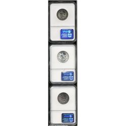 <B>1951-S<25C> MS67 NGC,</B></I> brilliant with frosty silver luster; <B>1953 MS67 NGC,>Q lovely gold and iridescent toning; and a <B>1954 MS67 NGC,</B></I> brilliant with peripheral iridescence. 3 Coins <BR><BR><B>Important notice:</B> Heritage usually auctions material at the rate of 200-250 lots per hour. On some occasions eBay Live bid software or the Internet may not be able to keep up with the pace of the auction. We recommend placing a realistic absentee bid now as insurance to avoid disappointment. Occasionally the auctioneer may eliminate or reject an eBay Live bid, and the auctioneer may also reopen a lot after the close of the eBay live bidding (usually because we missed an audience bid), and may reject your bid even if it shows you as the winning bidder. By bidding via eBay Live, you agree that Heritage may award the lot to another bidder at its sole discretion under the circumstances described above or any other reasonable circumstances. Since eBay bids are not shown to us until we open the lot on the floor, we treat those bids just like floor bids. In most cases the floor responds before the eBay bid is presented to us, due to Internet lag time, so for consistency we have made it a policy that floor bids are always considered first over tie eBay live bids. Also please note that all Heritage lots purchased through eBay Live carry a 20% Buyer's Premium. Please make sure you read the Terms and Conditions before you bid. </span></font></tr></table></td></tr></table>