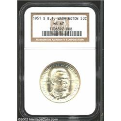 1951-S 50C Booker T. Washington MS67 NGC. Few examples of this type boast the exceptionally clean su