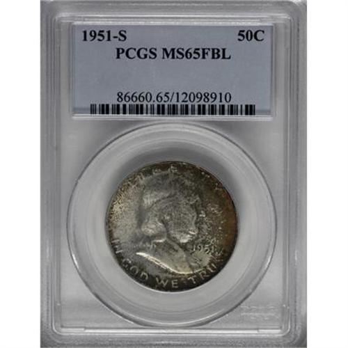 <B>1951-S 50C MS65 Full Bell Lines PCGS.</B></I> PCGS Population (345/81). NGC Census: (33/10). Numismedia Wsl. Price for NGC/PCGS coin in MS65: $480. (#86660)<BR><BR><b>Shipping:</b> Coins & Currency (<a target="_blank" href="http://www.heritageauctions.com/common/shipping.php">view shipping information</a>)