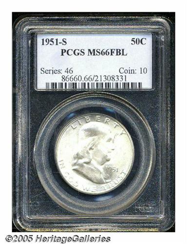 <B>1951-S<50C> MS66 Full Bell Lines PCGS.</B></I> Bright and exhibiting frosty luster overall. The bell lines are sharp as expected, and there are few noticeable marks. Population: 68 in 66, 0 finer (6/05).<BR><I>From The Southern Collection.</B></I>