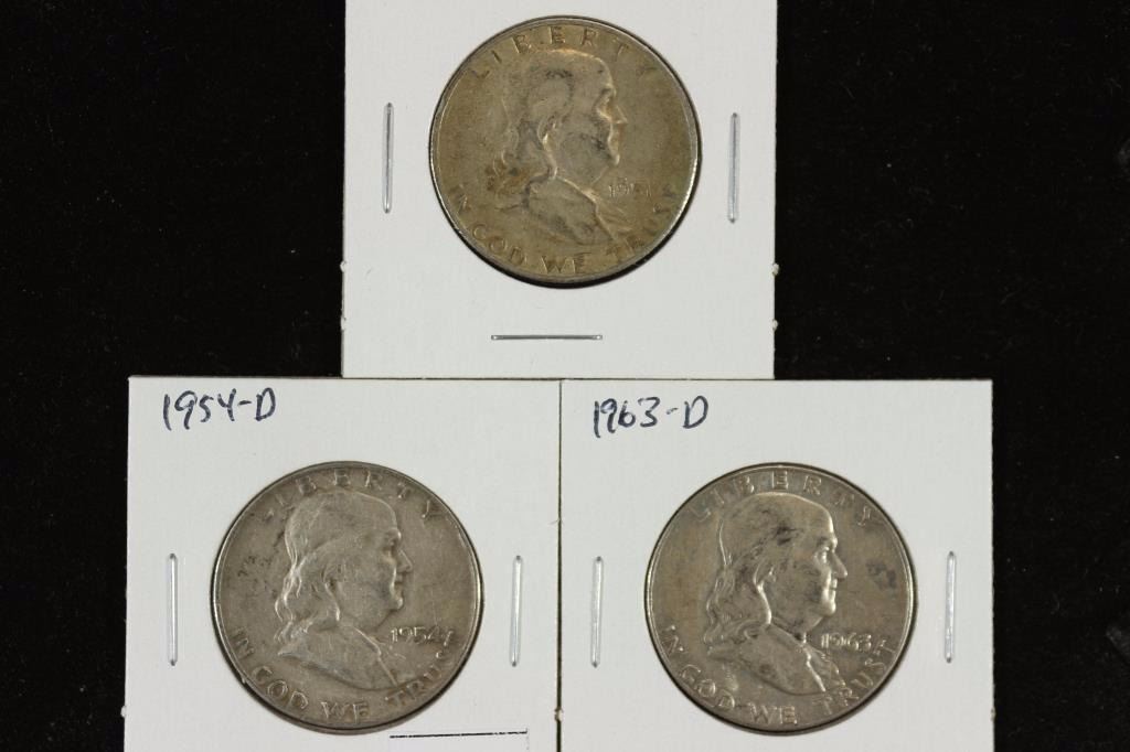 1951-S, 54-D & 63-D FRANKLIN HALF DOLLARS