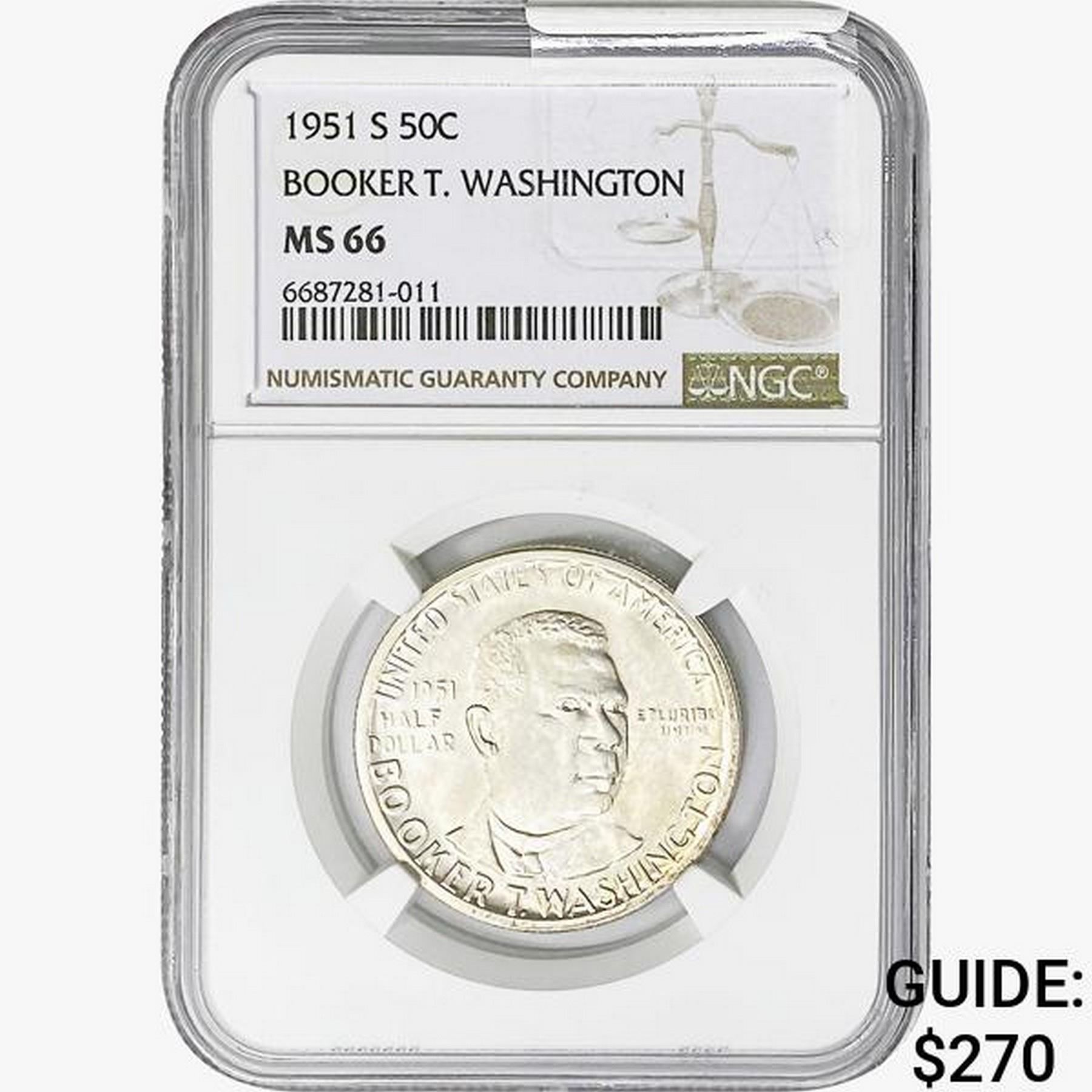 1951-S Booker T Half Dollar NGC MS66