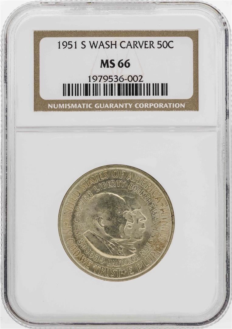 One 1951-S Booker T. Washington Memorial Half Dollar Coin NGC MS66. NGC Certified.
