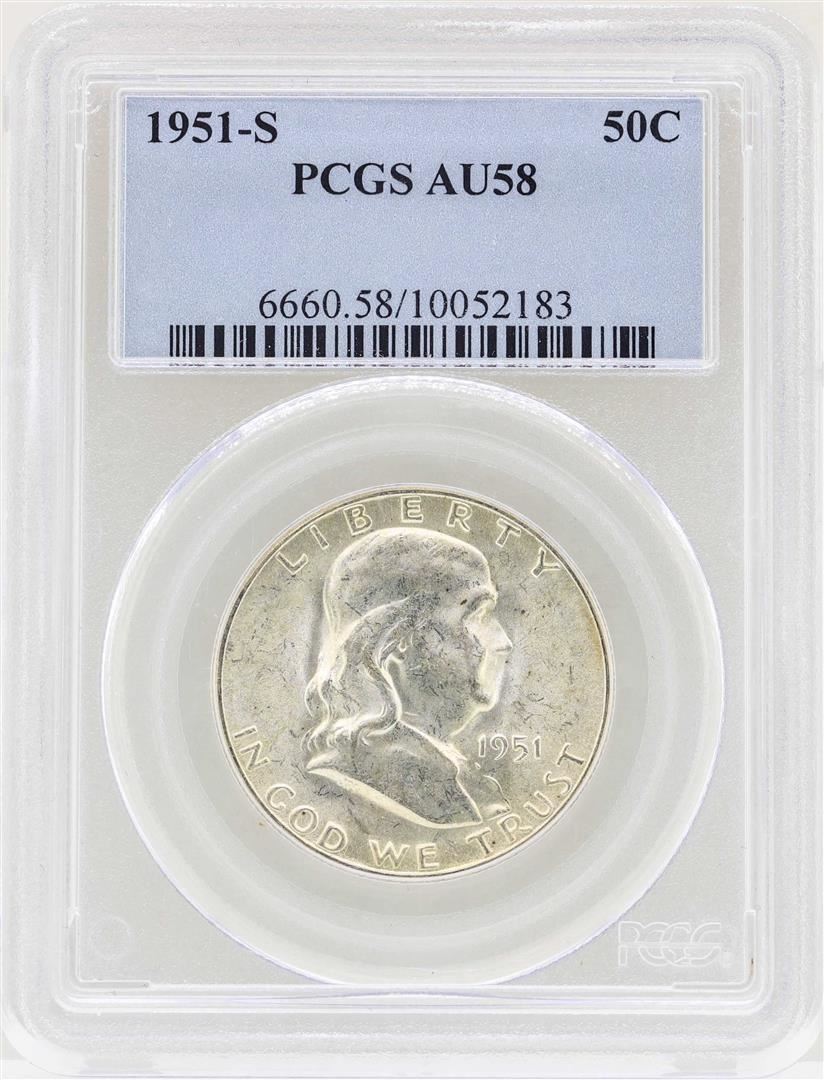 One 1951-S Franklin Half Dollar Coin NGC AU58. NGC Certified.