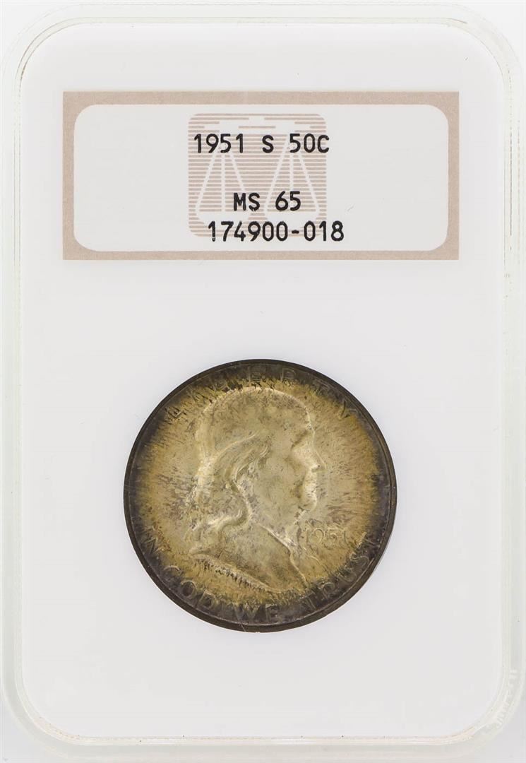 One 1951-S Franklin Half Dollar Coin NGC Graded MS65. NGC Certified.