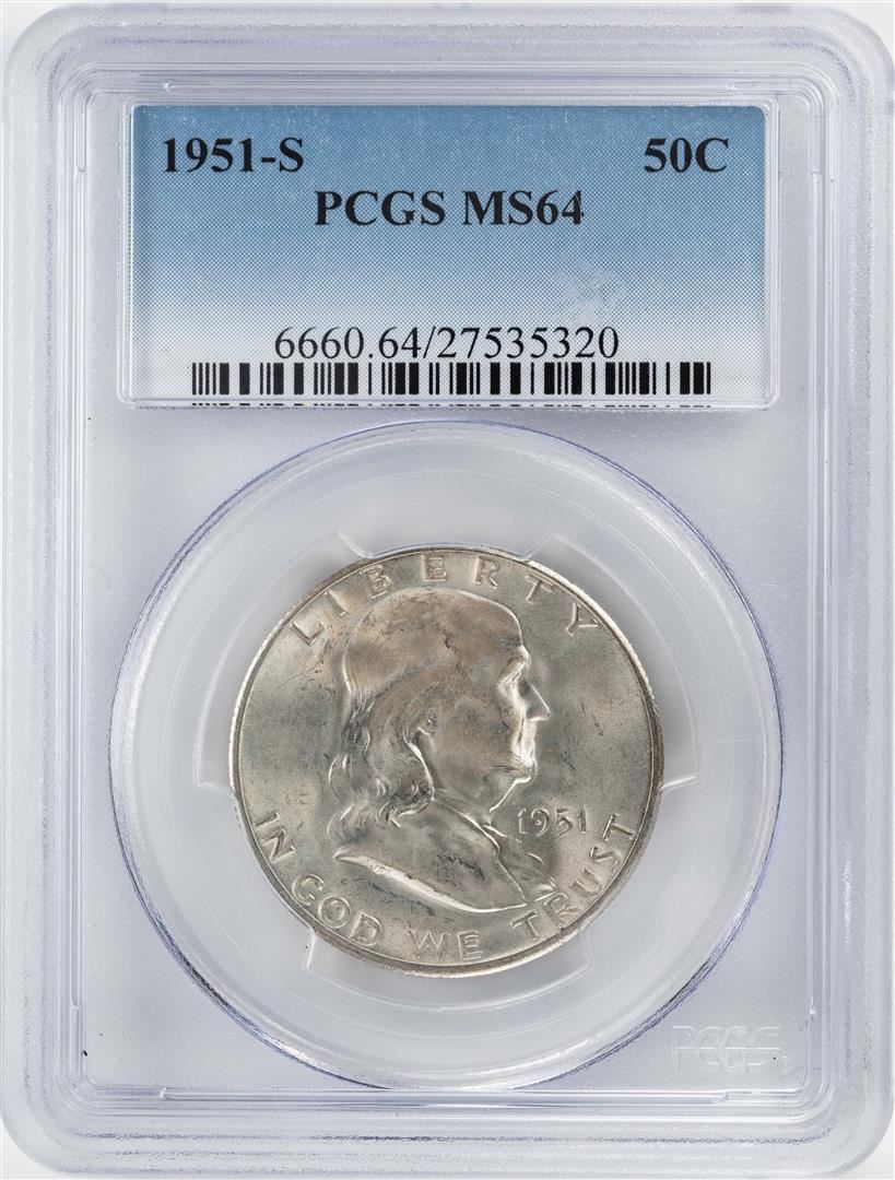 One 1951-S Franklin Half Dollar Coin PCGS MS64. PCGS Graded.