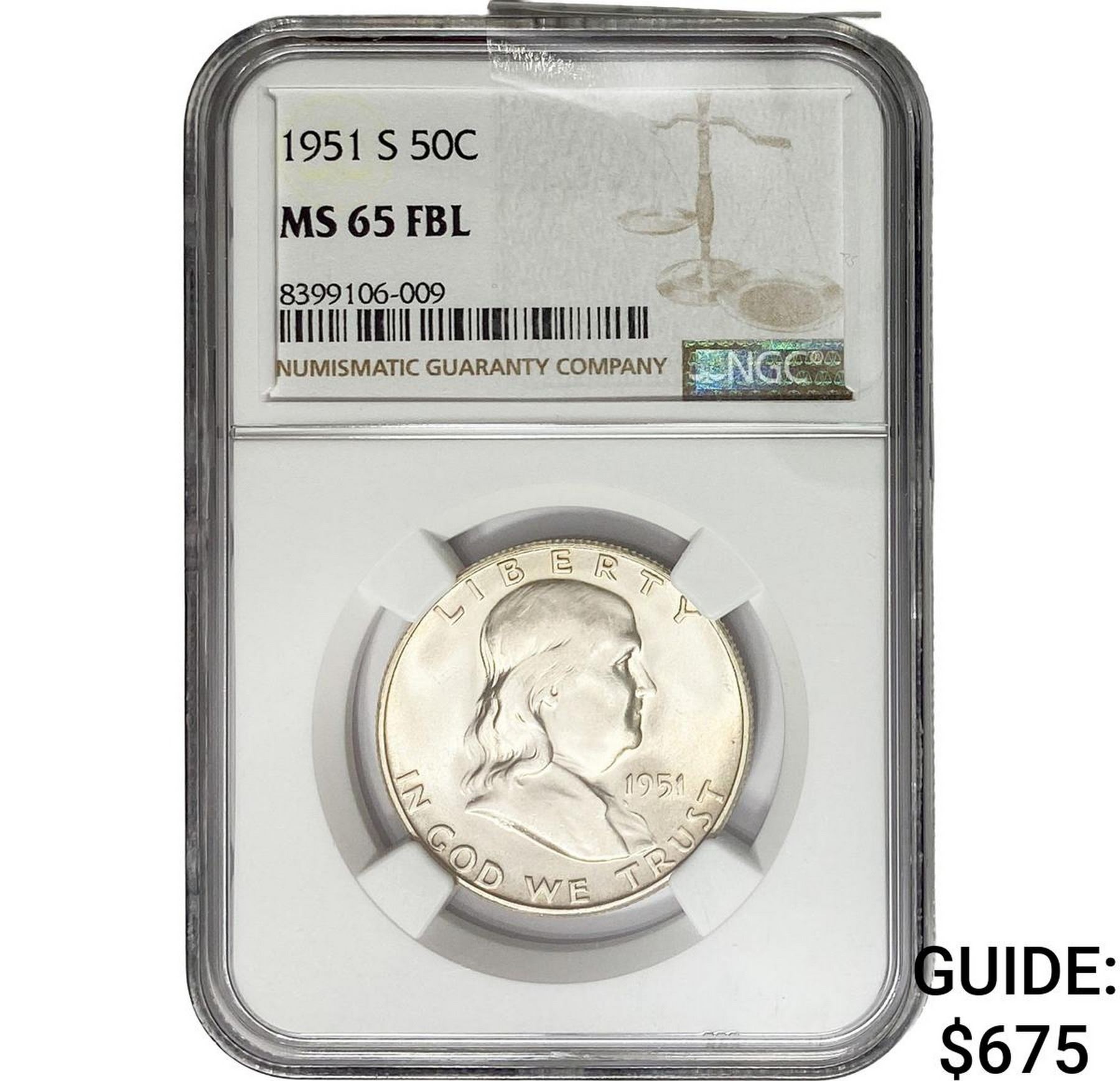 1951-S Franklin Half Dollar NGC MS65 FBL
