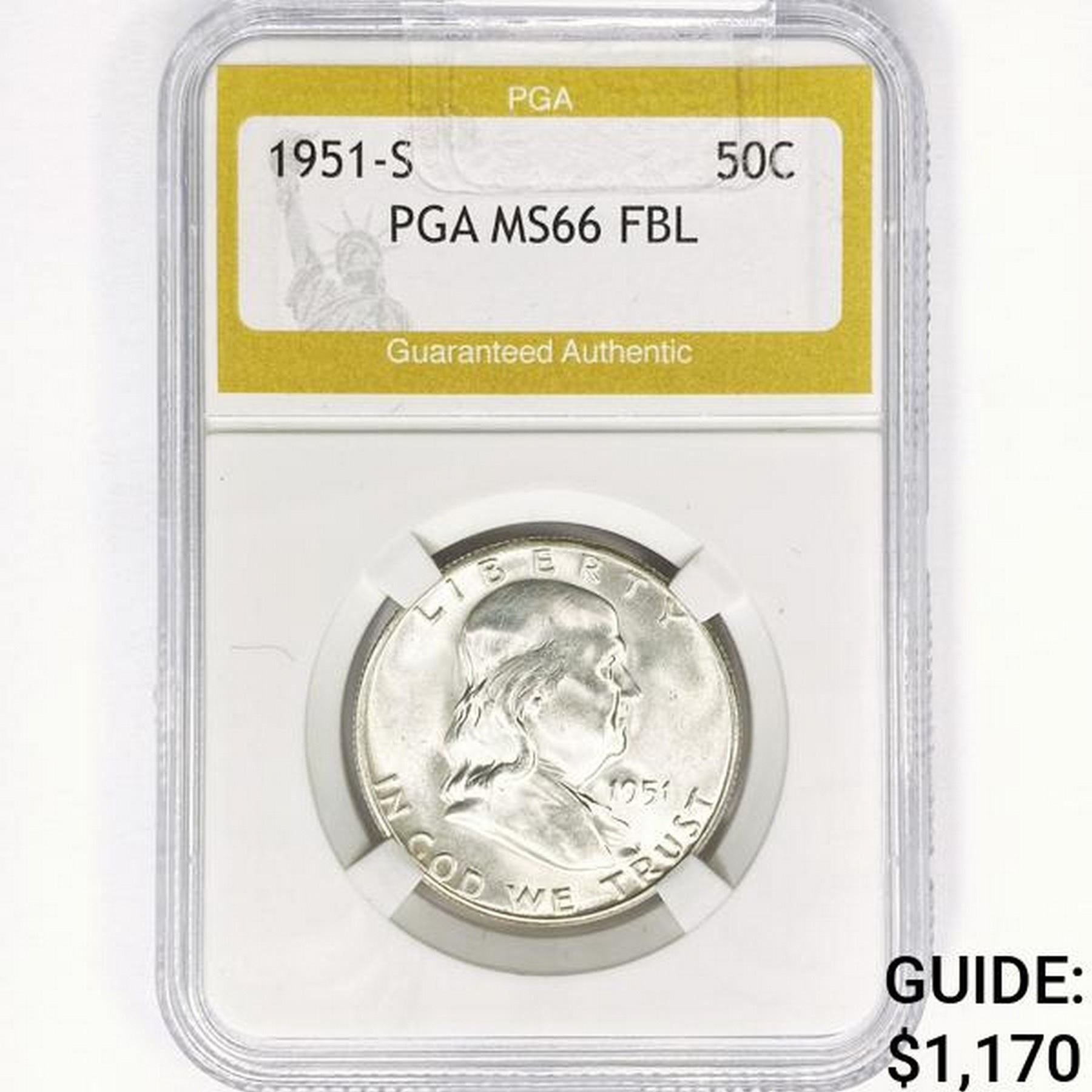 1951-S Franklin Half Dollar PGA MS66 FBL