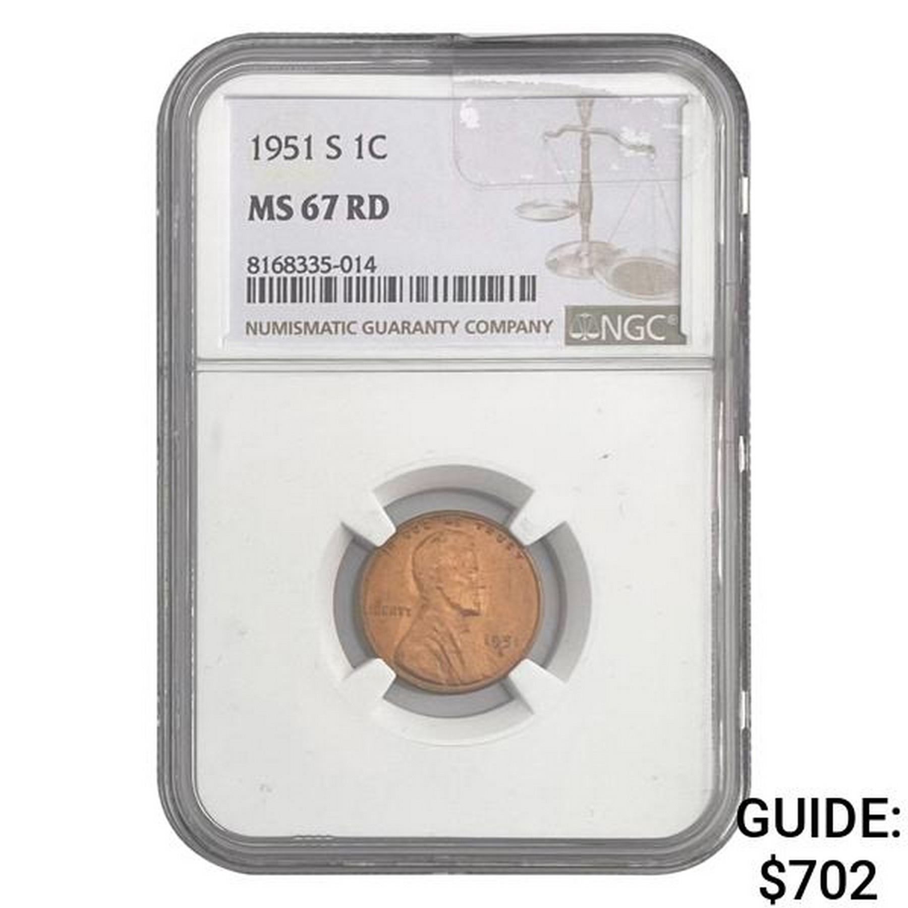 1951-S Lincoln Cent NGC MS67 RD