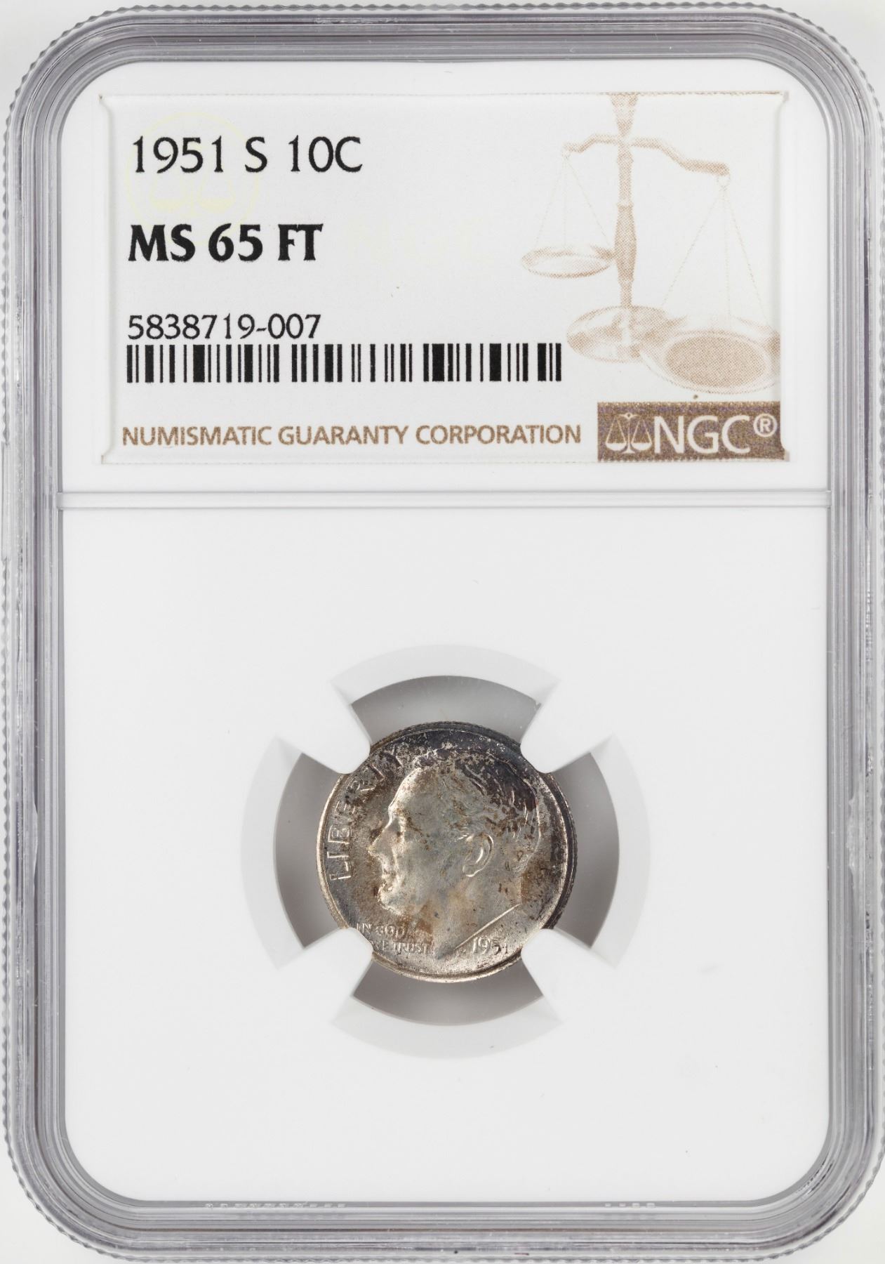 One 1951-S Roosevelt Dime Coin NGC MS65FT.