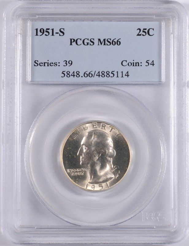 1951-S WASHINGTON QUARTER, PCGS MS-66 BLAST WHITE!