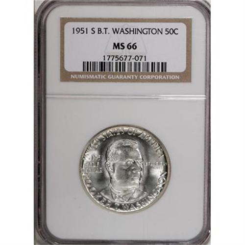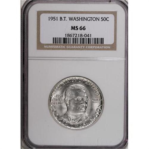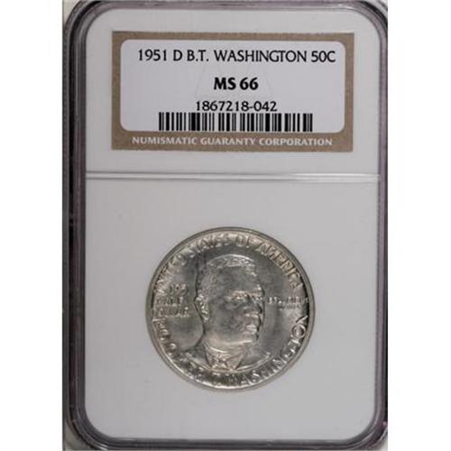 <B>1951 SET Booker T. Washington PDS Set MS66 NGC.</B></I> The set includes: <B>1951,</B></I> brilliant and lustrous with minor incompleteness of strike on the portrait; <B>1951-D,</B></I> satiny and stone-white, well struck; and a <B>1951-S,</B></I> shimmering and nearly immaculate with an above average strike.<BR><BR><b>Shipping:</b> Coins & Currency (<a target="_blank" href="http://www.heritageauctions.com/common/shipping.php">view shipping information</a>)