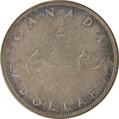 Canada Silver Dollar 1951 Short Waterlines, PCGS MS-65. Light mother of pearl toning
