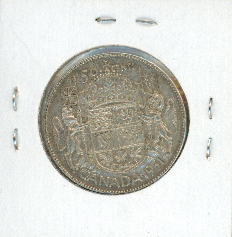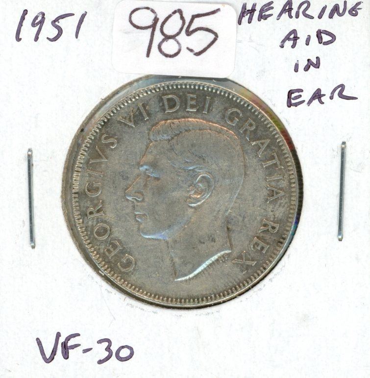 1951 Silver 50 Cents. Hearing Aid in King’s Ear from Die Clash. VF-30. Scarce.