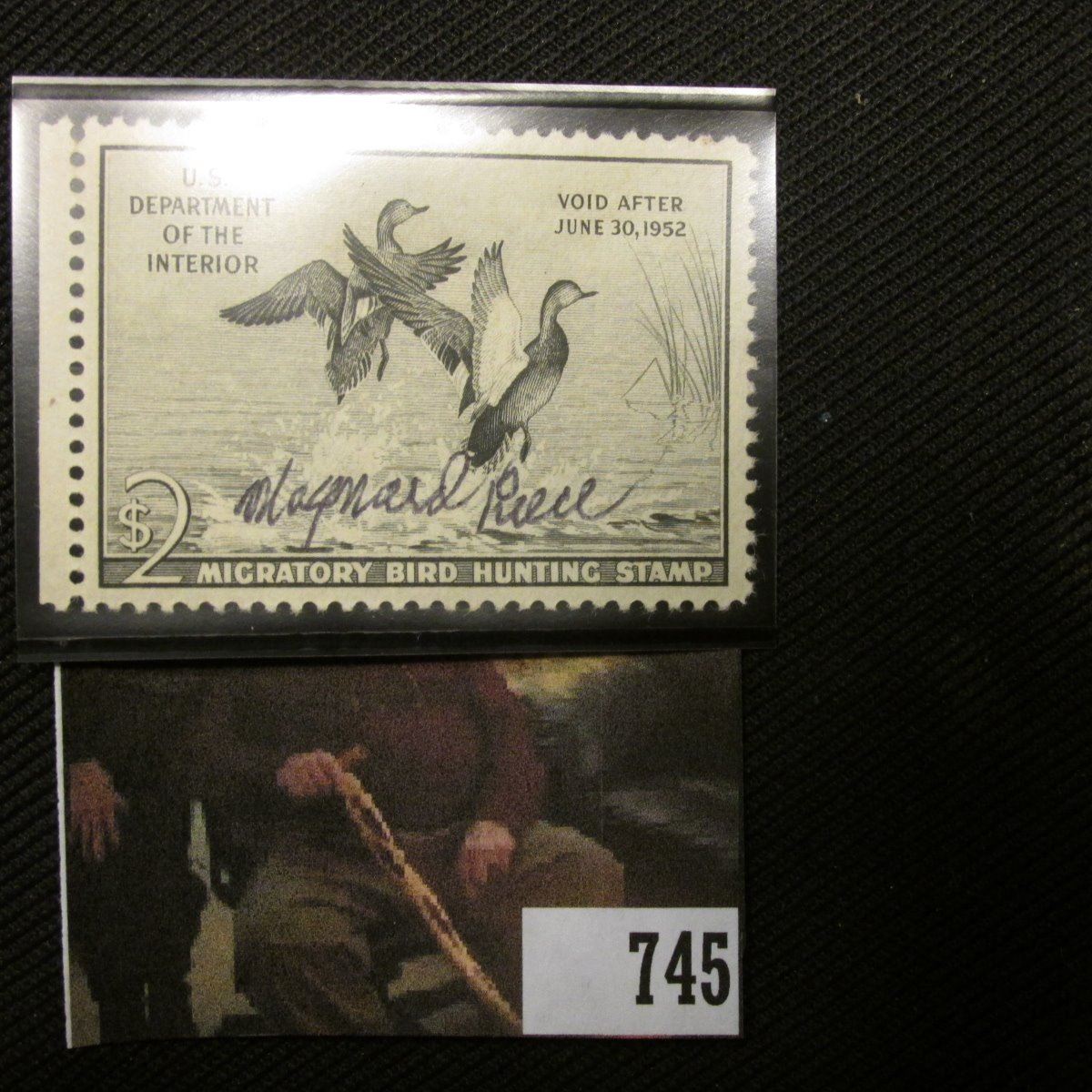 1951 Two Dollar Federal Migratory Bird Hunting Stamp, Signed by Artist Maynard Reece, light hinge, S