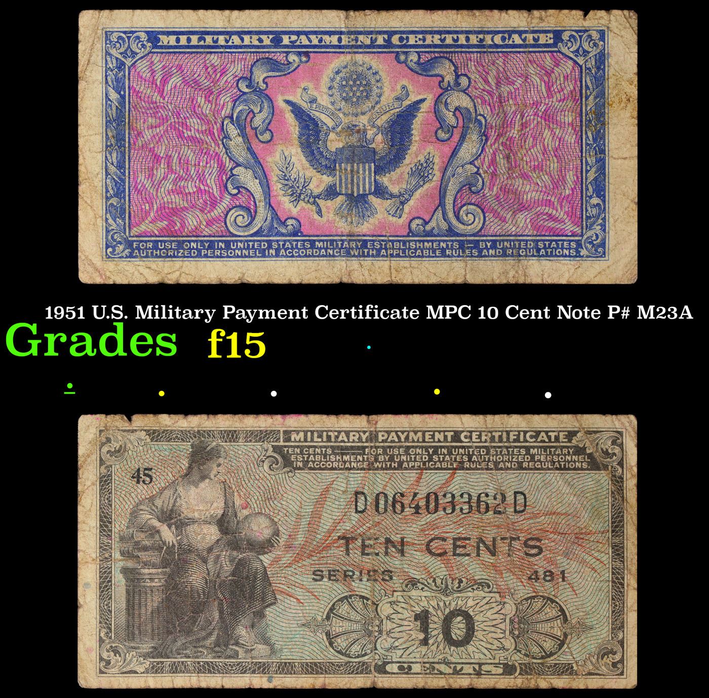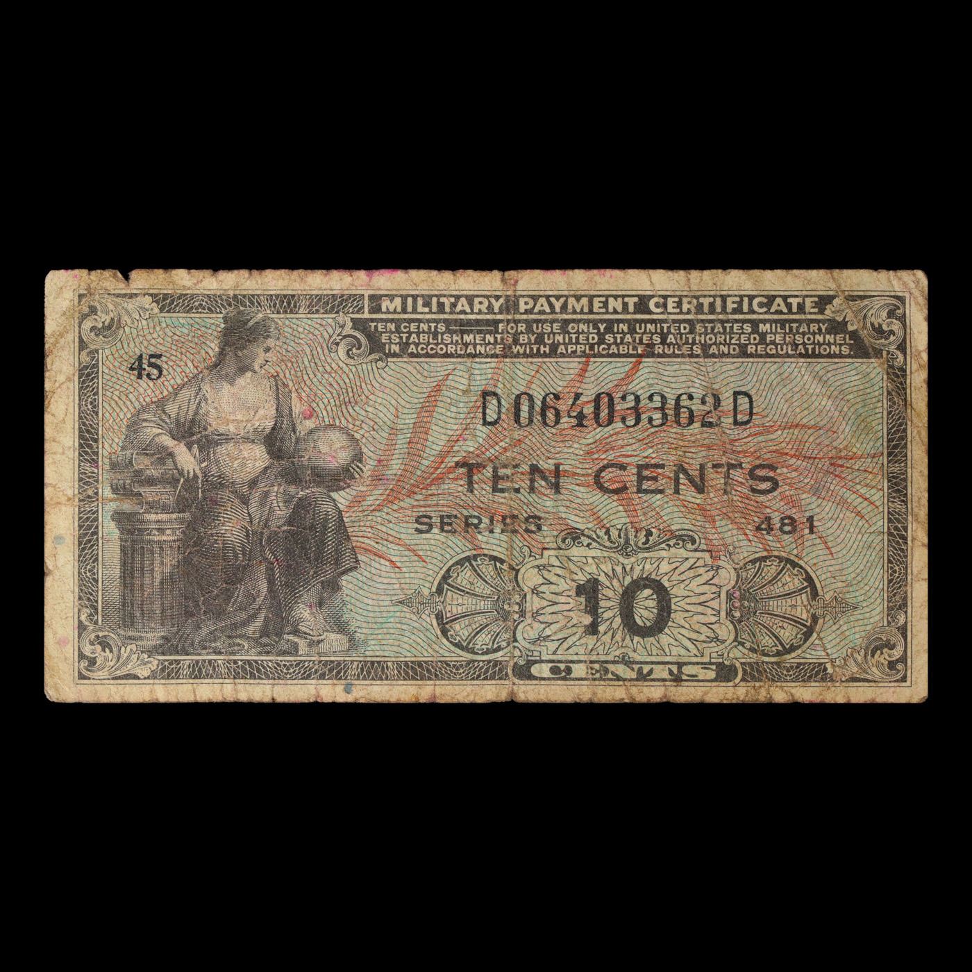 1951 U.S. Military Payment Certificate MPC 10 Cent Note P# M23A Grades f+. Allied Military Currency ("AMC") was a form of currency issued by the Allied powers during World War II, to be issued to troops entering liberated or newly occupied countries. Historically, soldiers serving overseas had been paid in local currency rather than in their "home" currency. Most cash drawn by soldiers would go directly into the local economy, and in a damaged economy the effects of a hard currency such as the dollar circulating freely alongside weaker local currencies could be severely problematic, risking severe inflation.