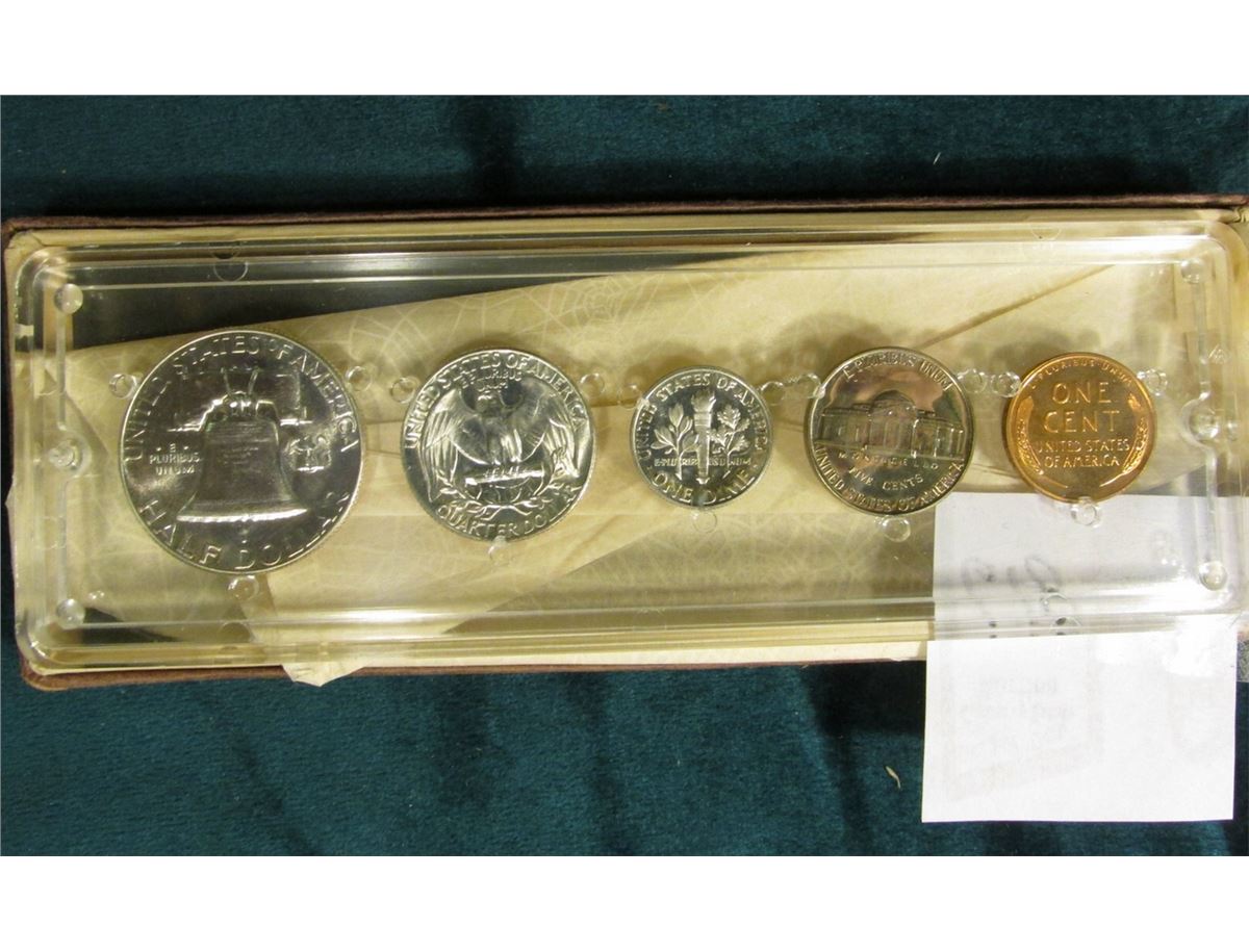 1951 U.S. Proof Set Cent to Half-Dollar in a Seitz holder and box. Five-piece set.