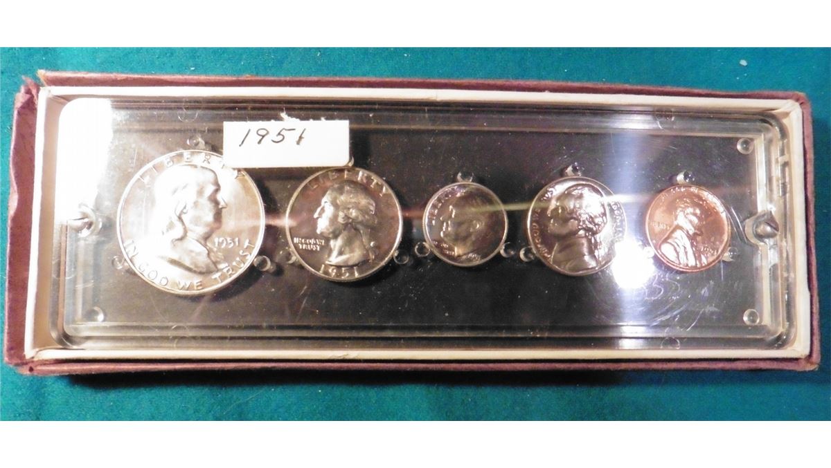 1951 U.S. Proof Set. Five-piece in an old Seitz Coin holder. A superb Gem Set.