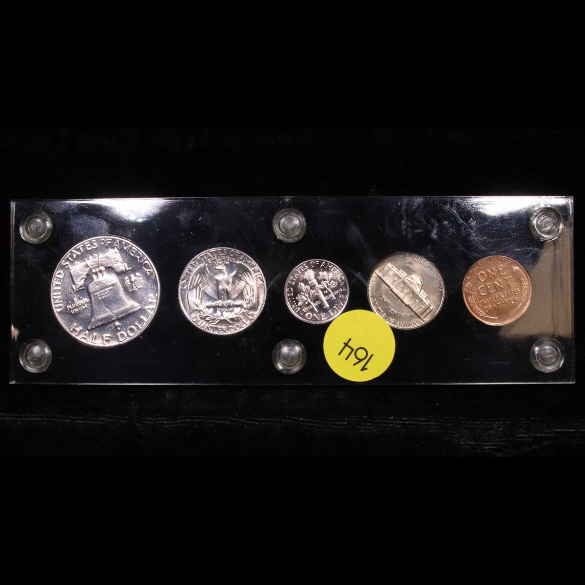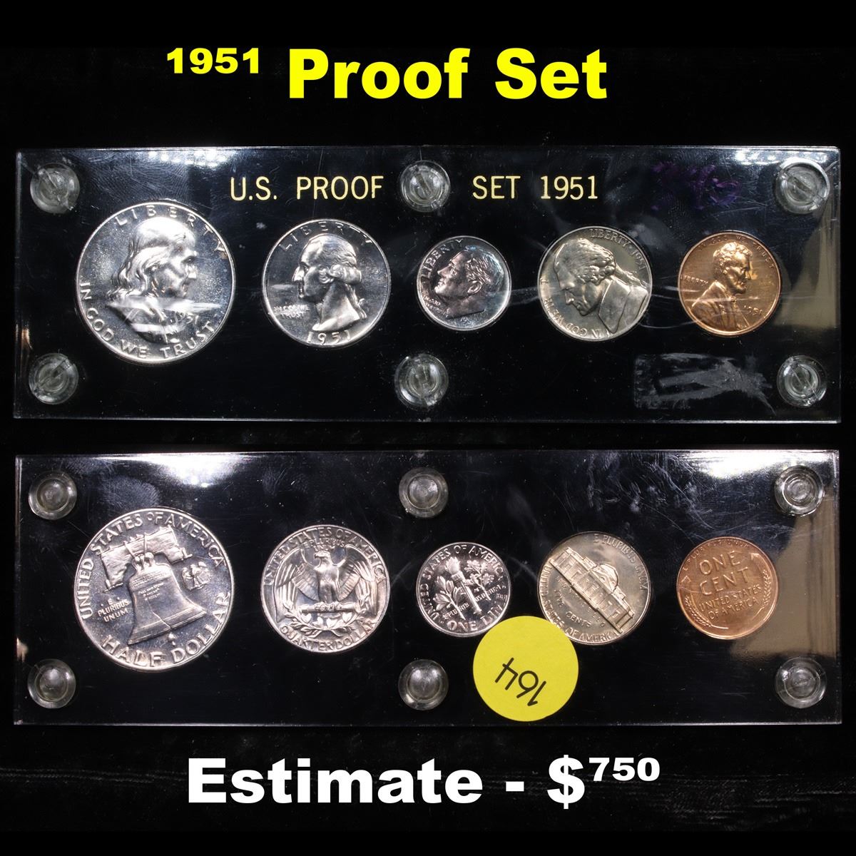 1951 United States Proof Set in Capital Plastic Holder. This set, has a 90% Proof Silver Franklin Half Dollar, a 90% Proof Silver Quarter, a 90% Proof Silver Dime, plus the proof nickel and proof penny. All encased in a Capital Plastic Holder.