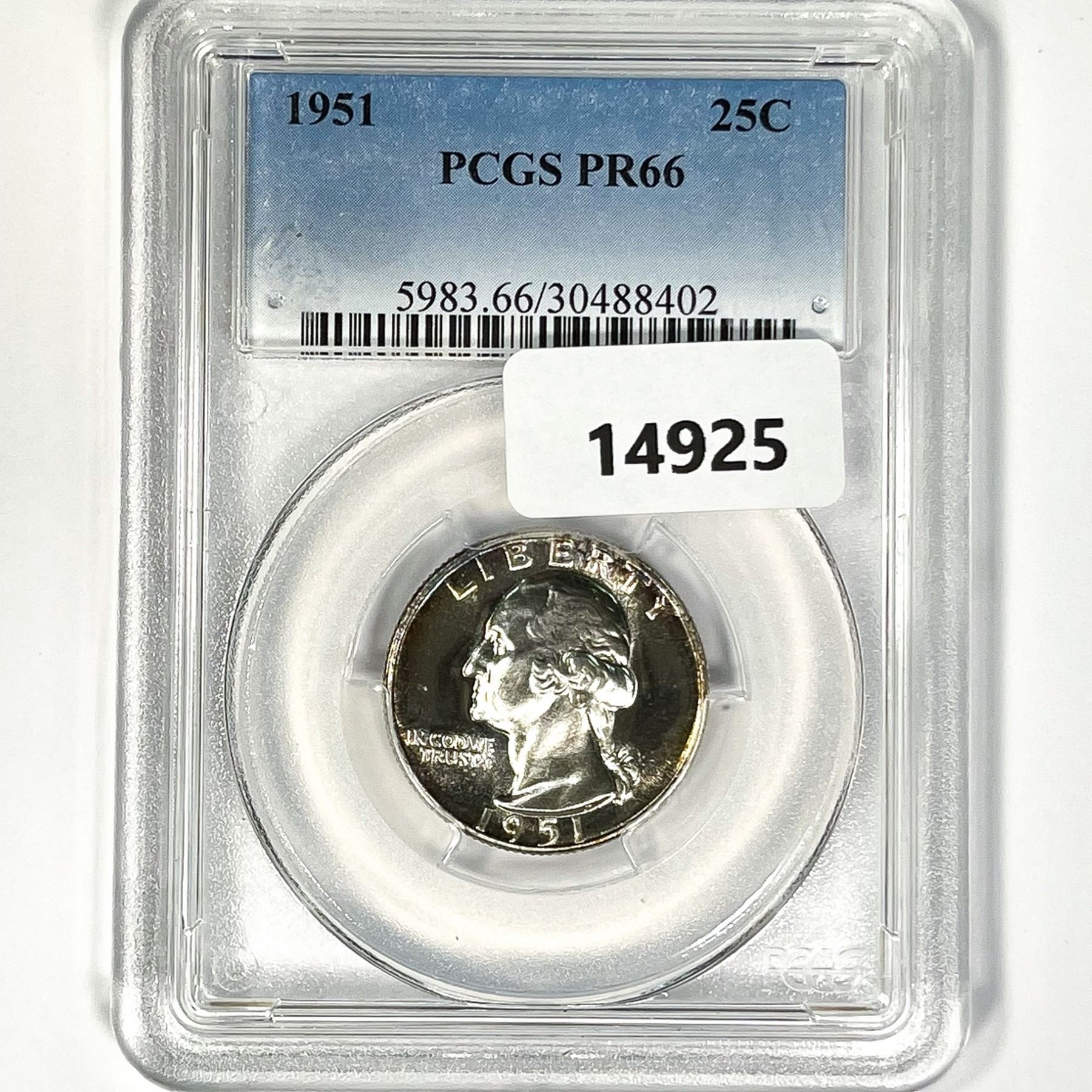 1951 Washington Silver Quarter PCGS PR66