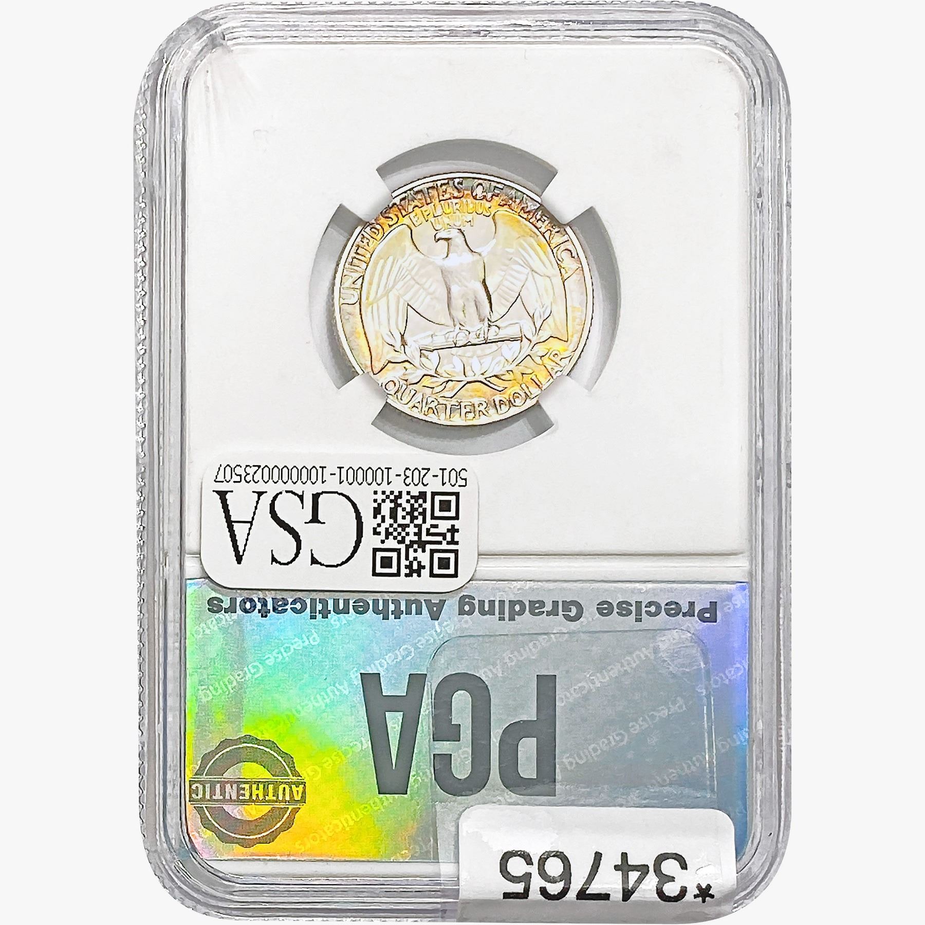 COINS AND CURRENCY LISTED IN GSA’S CATALOG AS GRADED AND ENCAPSULATED BY PCGS, NGC, ANACS, ICG, PCGS CURRENCY, PMG, PCGS BANKNOTE GRADING, CMC OR ANY OTHER THIRD-PARTY GRADING SERVICE ARE LIKEWISE SOLD “AS-IS” EXCEPT AS EXPRESSLY SET FORTH HEREIN. ALL THIRD-PARTY GRADING SERVICE GUARANTEES, INCLUDING AUTHENTICITY, ARE THE SOLE RESPONSIBILITY OF THE THIRD-PARTY GRADING SERVICE AND NOT WARRANTIES OR GUARANTEES OF GSA. BIDDERS SHOULD CONTACT THESE THIRD-PARTY GRADING SERVICES DIRECTLY WITH RESPECT TO ANY CLAIMS OR QUESTIONS THEY MAY HAVE CONCERNING THEIR GUARANTEES AND WARRANTIES. BIDDERS ACKNOWLEDGE AND AGREE THAT AUCTIONEER IS NOT BOUND BY OR LIABLE FOR ANY OPINION OR CERTIFICATION BY ANY THIRD-PARTY GRADING SERVICE. REMOVAL OF A PRODUCT FROM ITS PROTECTIVE CASING OR HOLDER OR ALTERATION OF ANY COIN HOLDER WAIVES ALL RIGHTS CONCERNING THE PRODUCT CONTAINED THEREIN.
