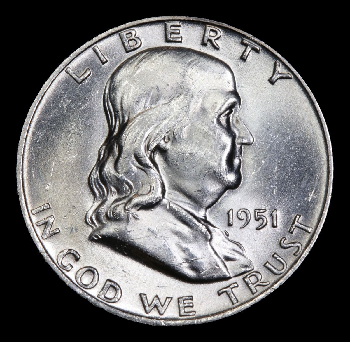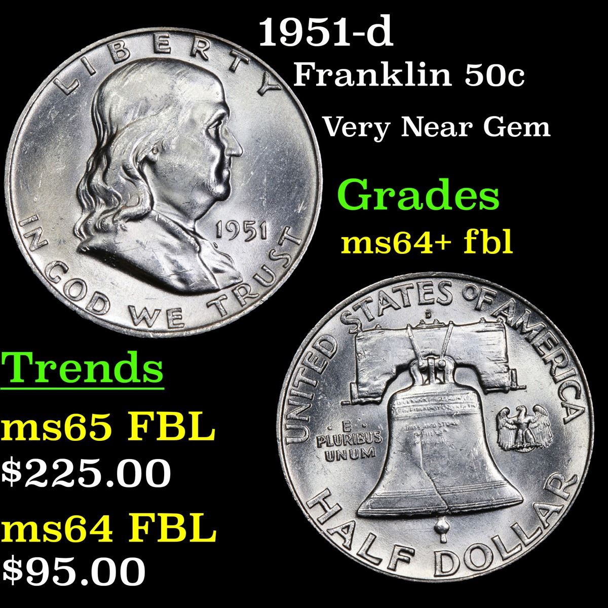 1951-d . Very Near Gem Franklin Half Dollar 50c Grades Choice Unc+ FBL.