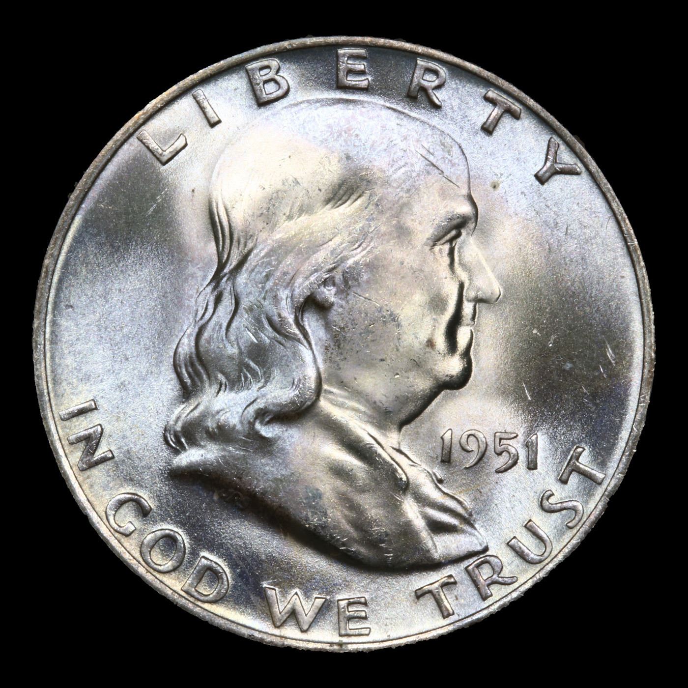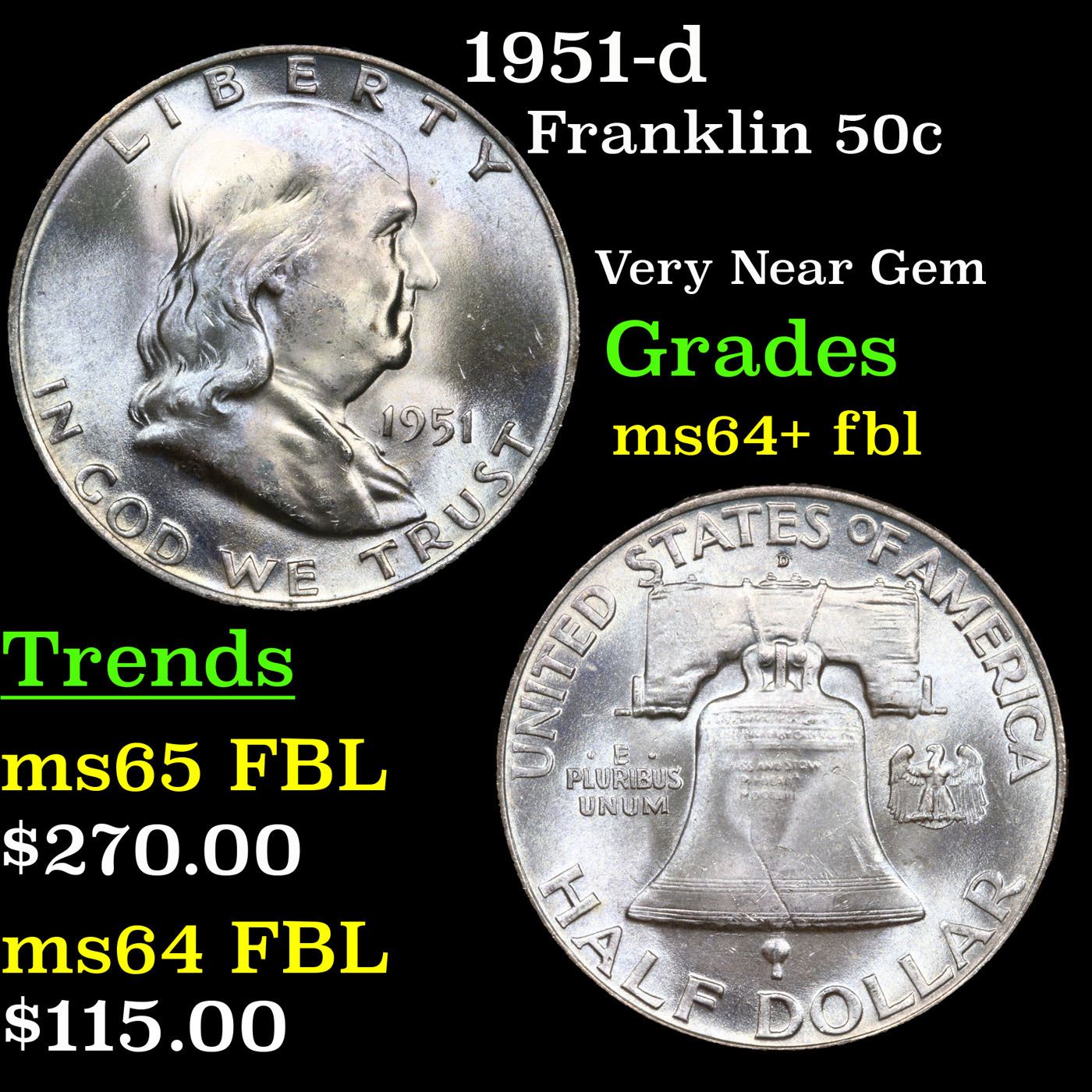 1951-d Franklin Half Dollar 50c Grades Choice Unc+ FBL.