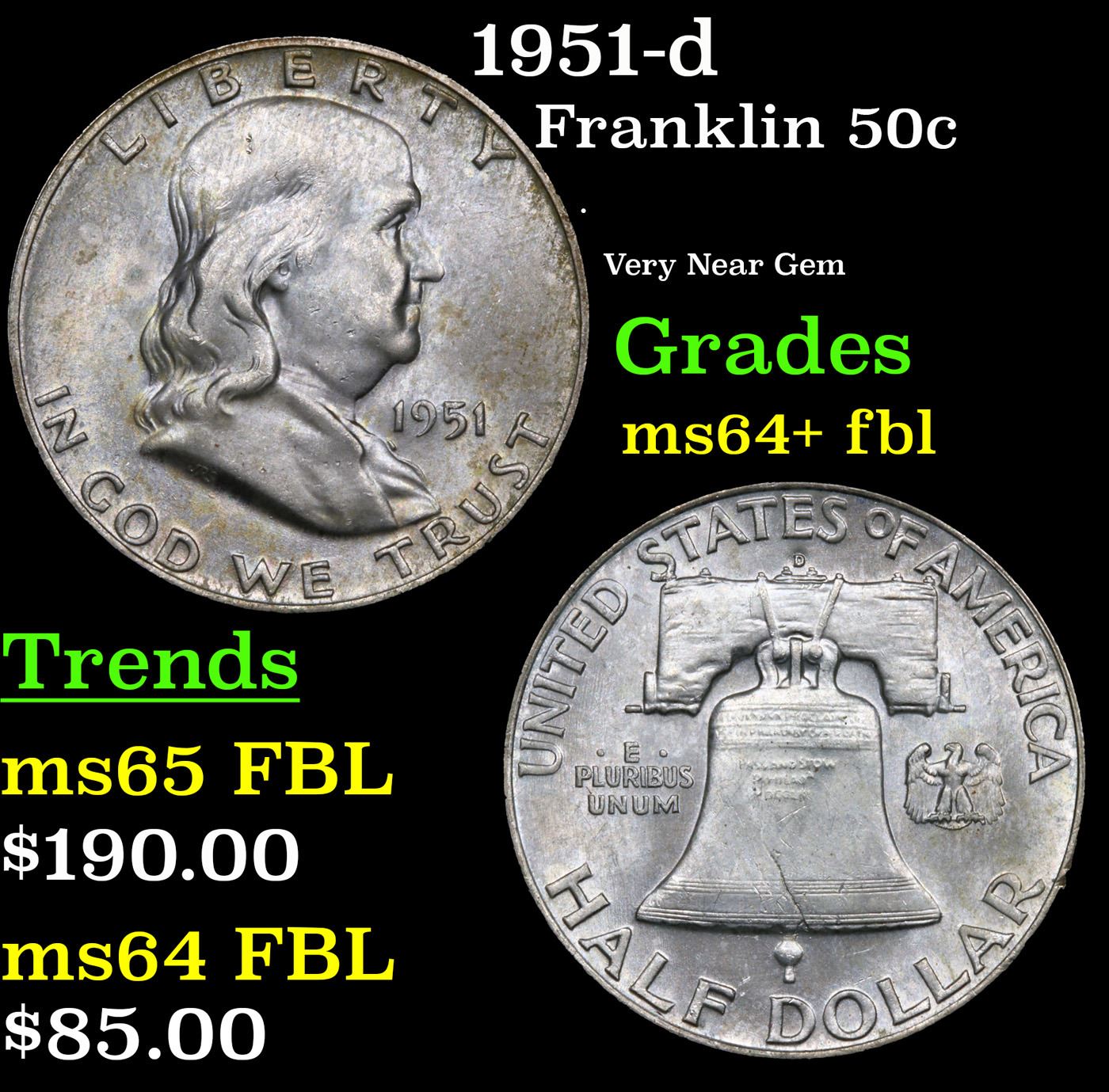 1951-d Franklin Half Dollar 50c Grades Choice Unc+ FBL.