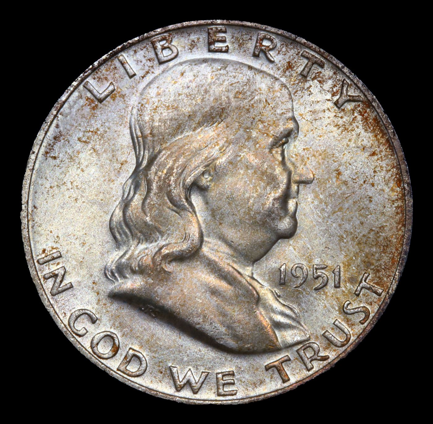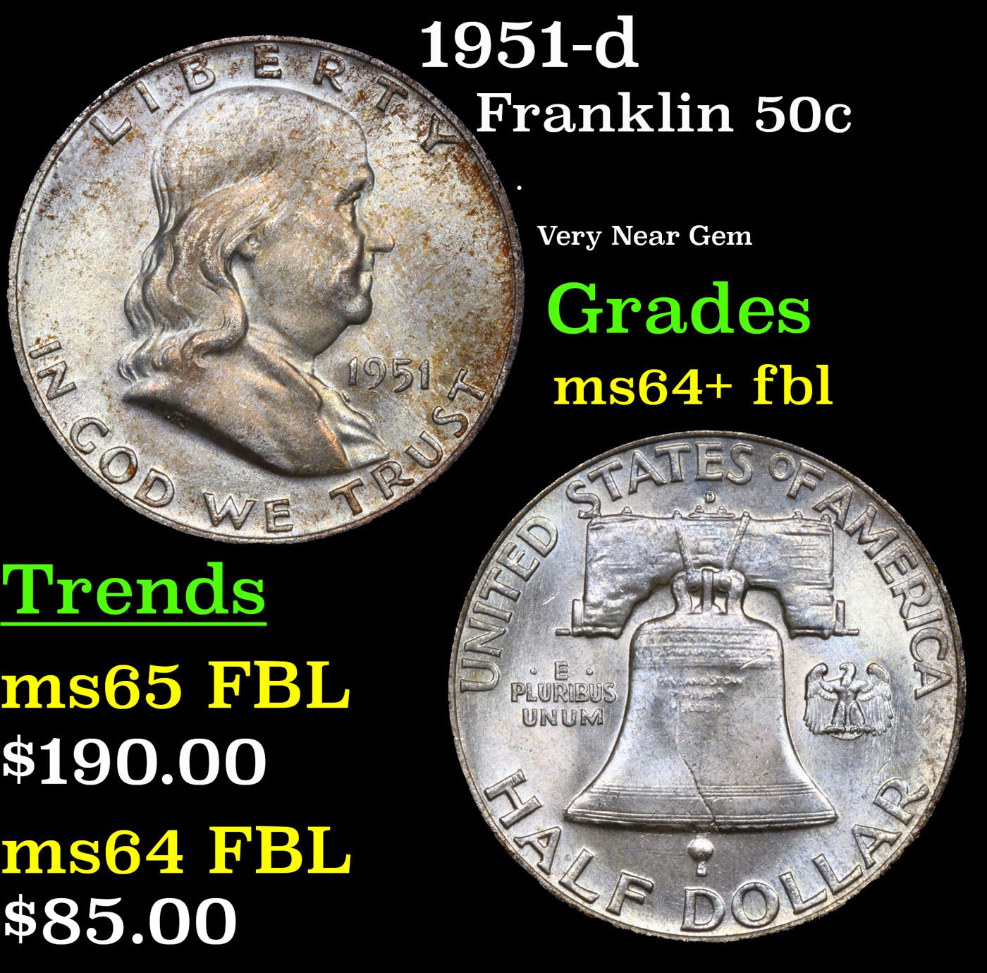 1951-d Franklin Half Dollar 50c Grades Choice Unc+ FBL.