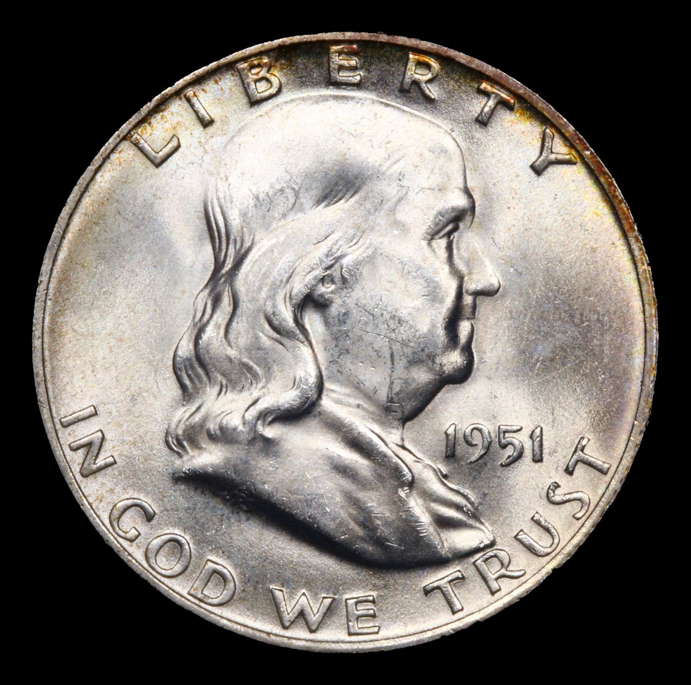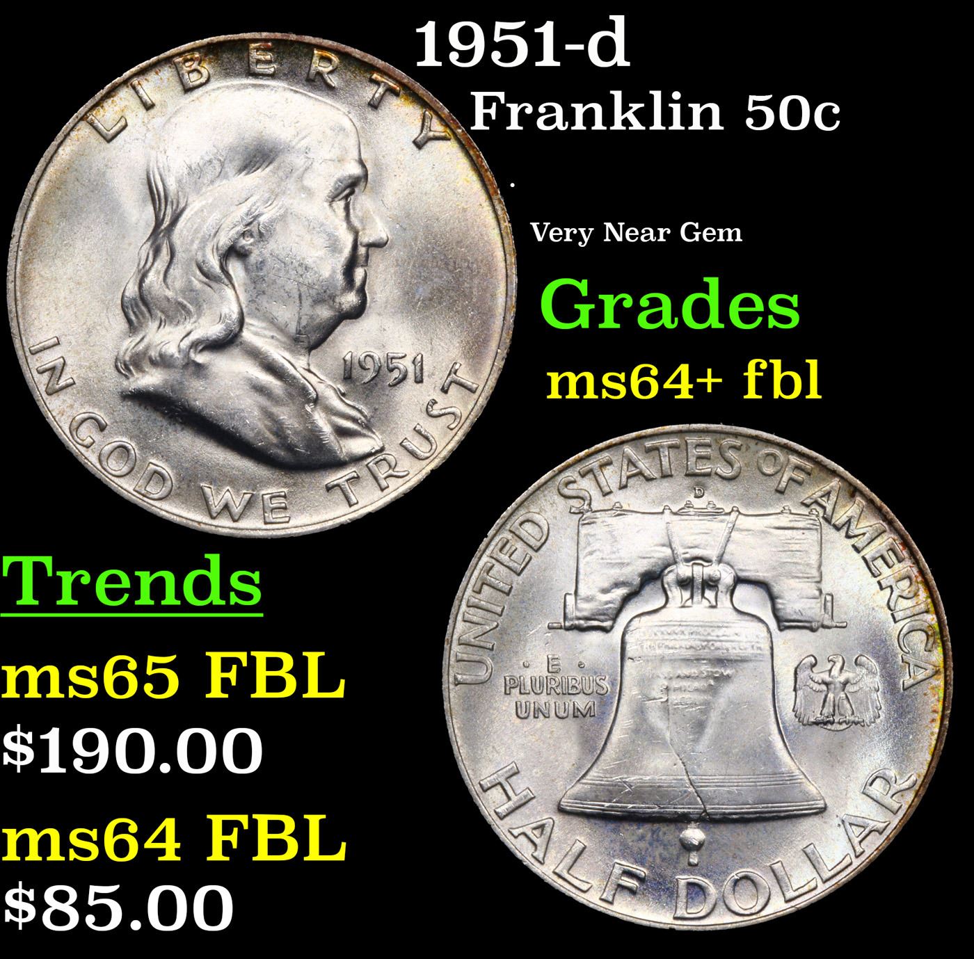 1951-d Franklin Half Dollar 50c Grades Choice Unc+ FBL.
