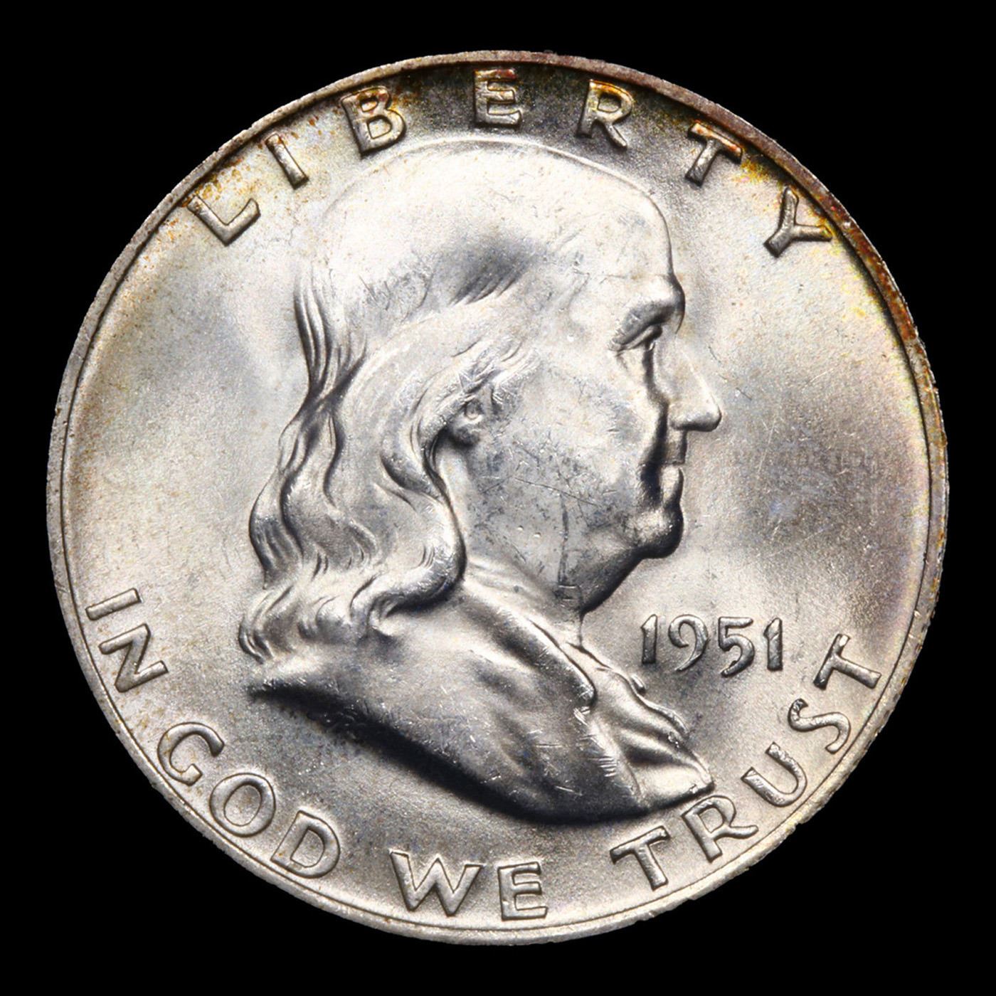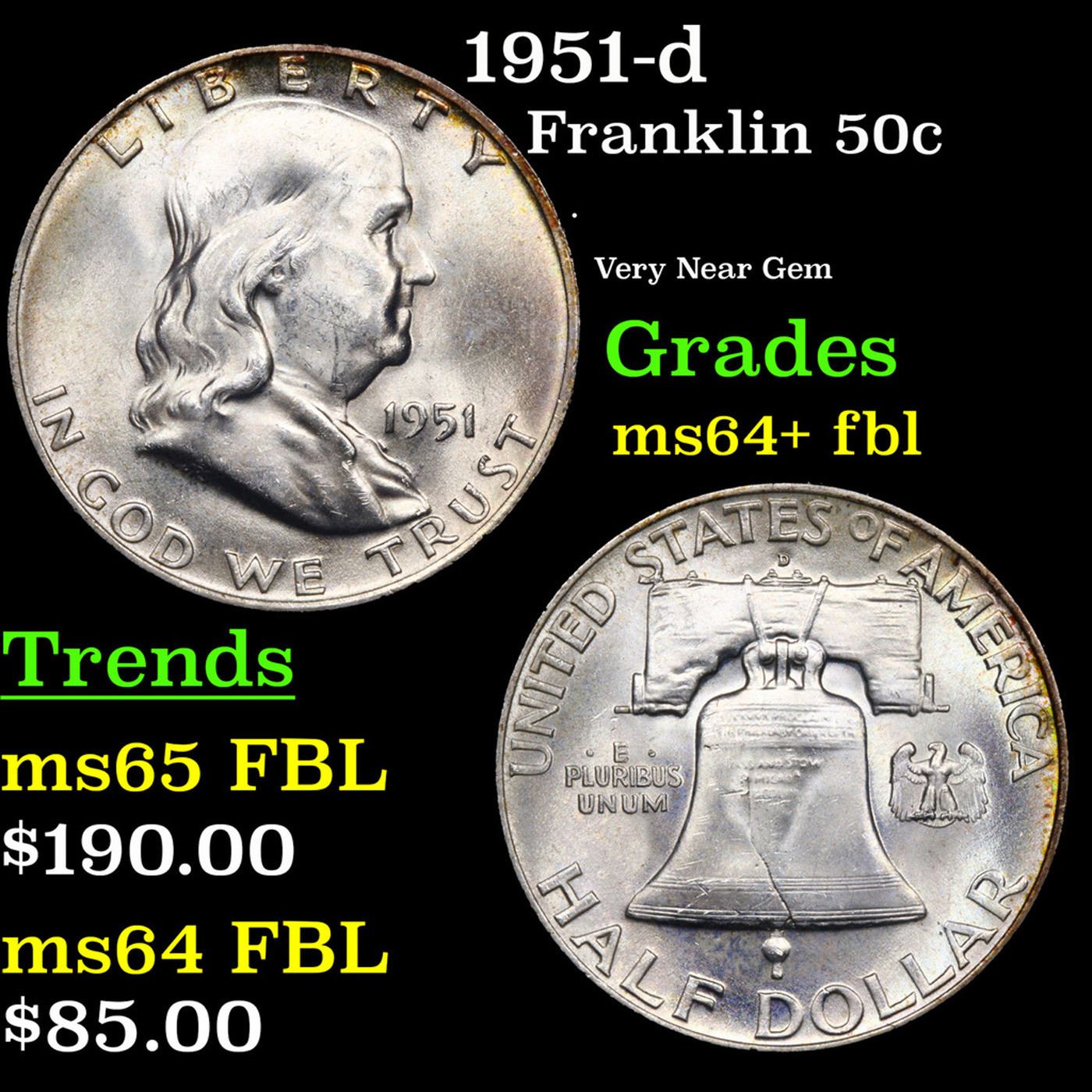 1951-d Franklin Half Dollar 50c Grades Choice Unc+ FBL.