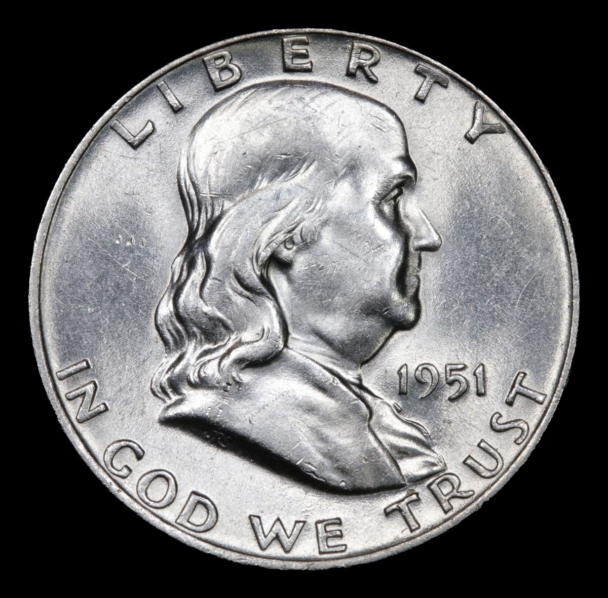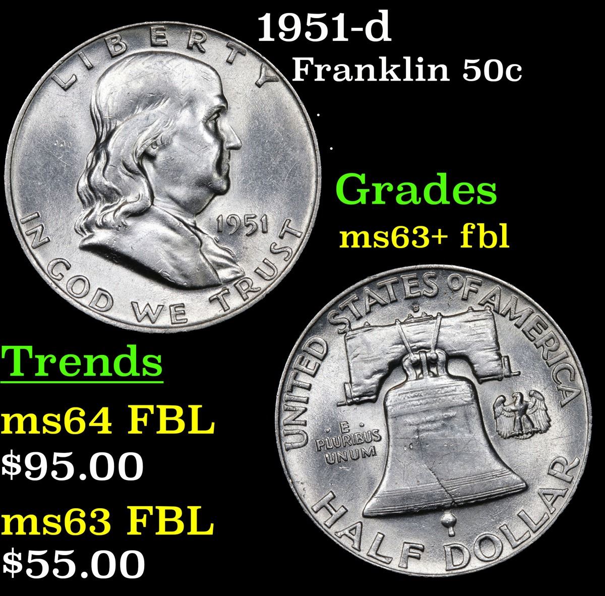 1951-d . . Franklin Half Dollar 50c Grades Select Unc+ FBL.