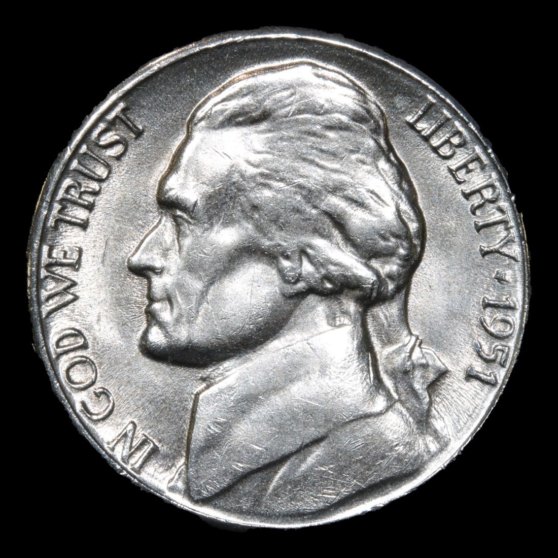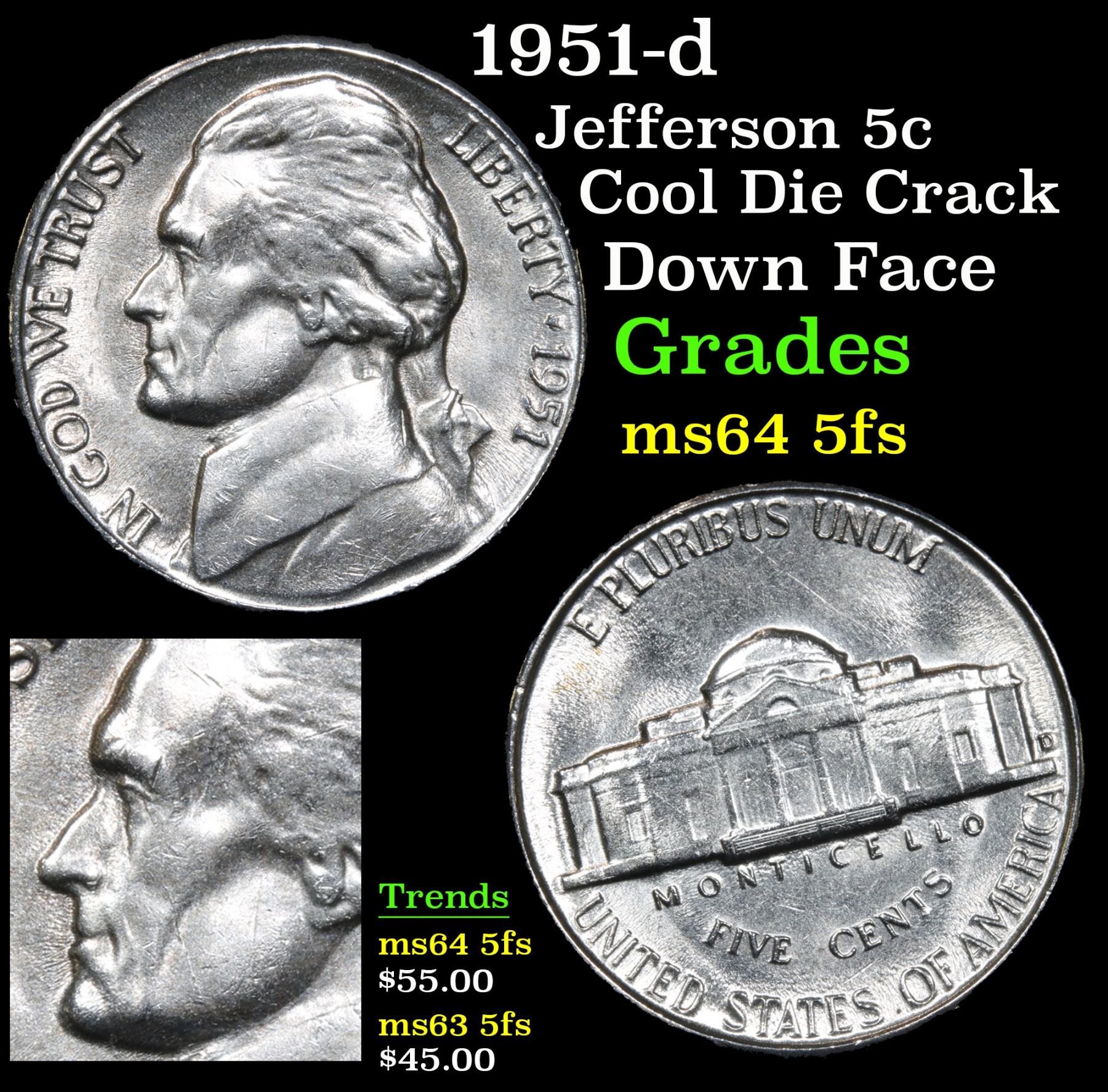 1951-d Jefferson Nickel 5c Grades Choice Unc 5fs. Cool Die Crack
