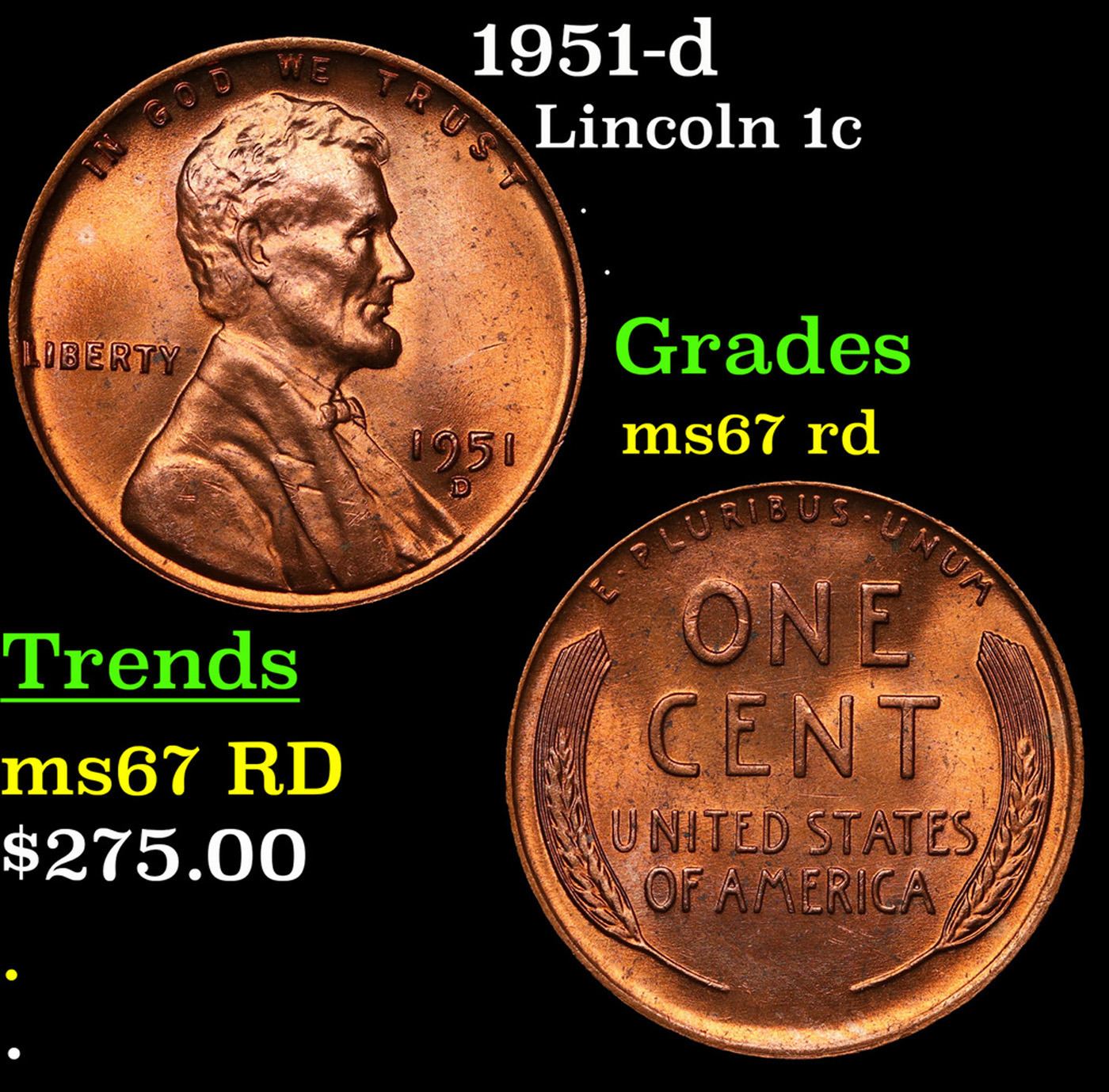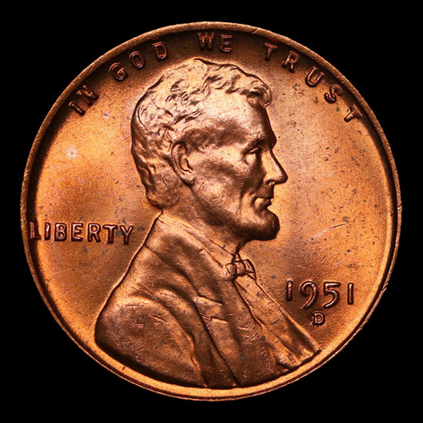 1951-d Lincoln Cent 1c Grades GEM++ Unc RD.