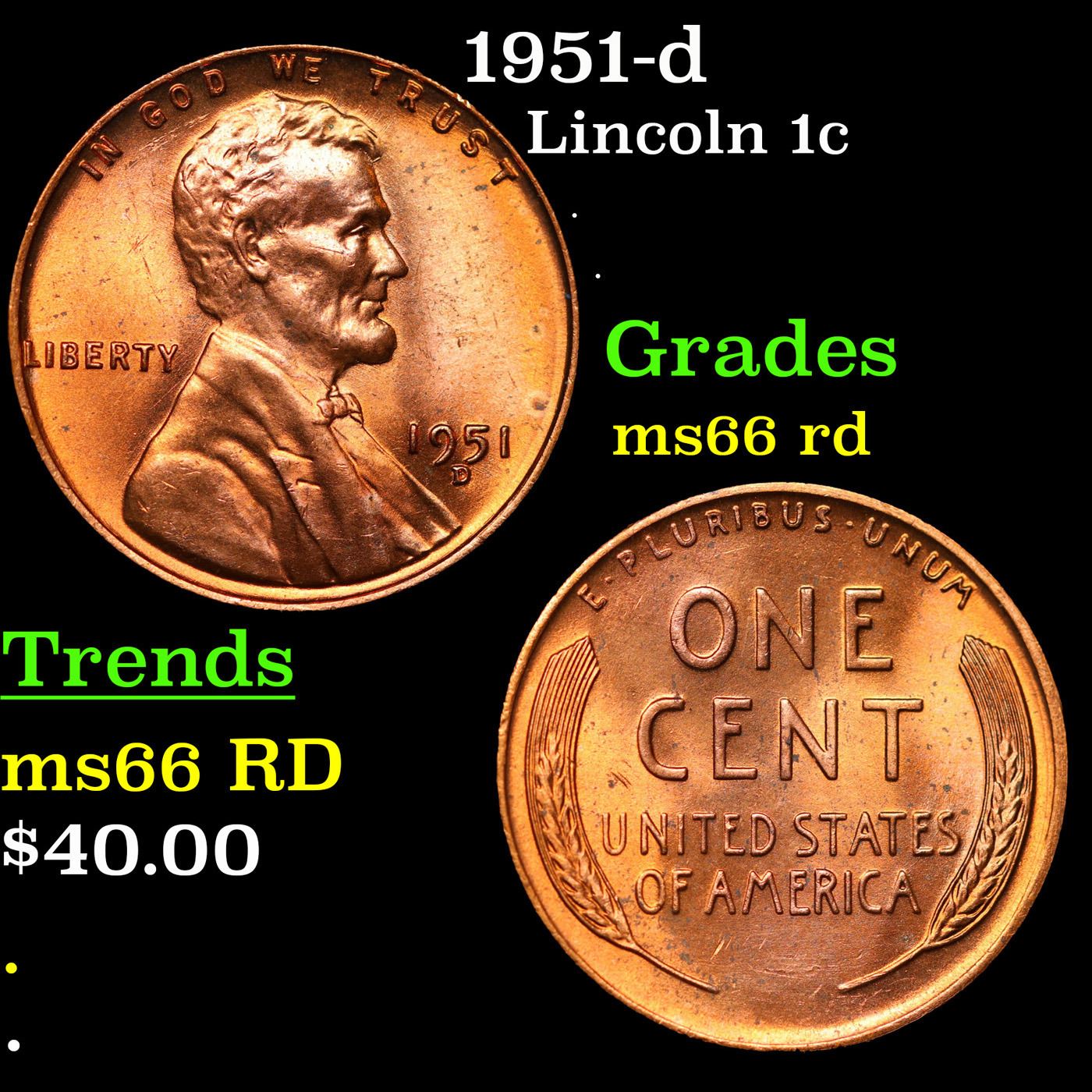 1951-d Lincoln Cent 1c Grades GEM+ Unc RD.