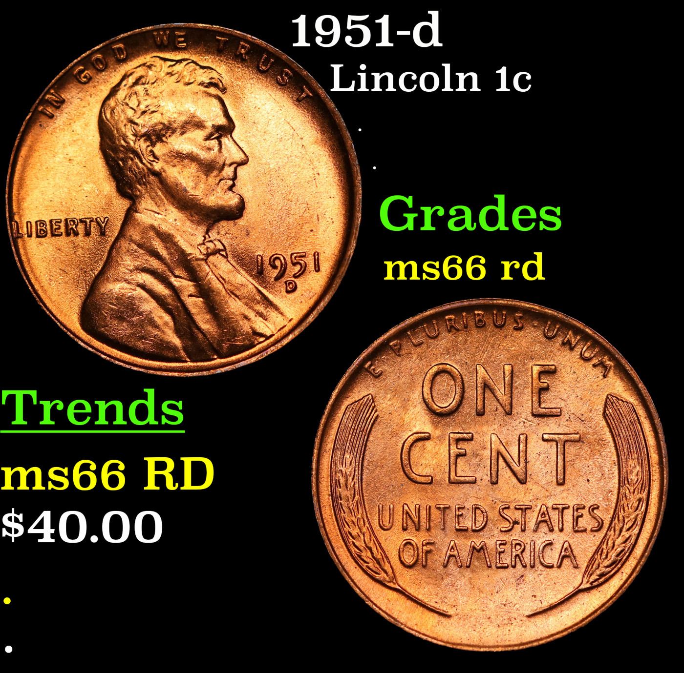 1951-d Lincoln Cent 1c Grades GEM+ Unc RD.