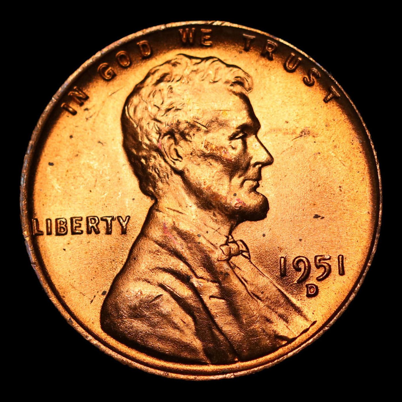 1951-d Lincoln Cent 1c Grades GEM+ Unc RD.