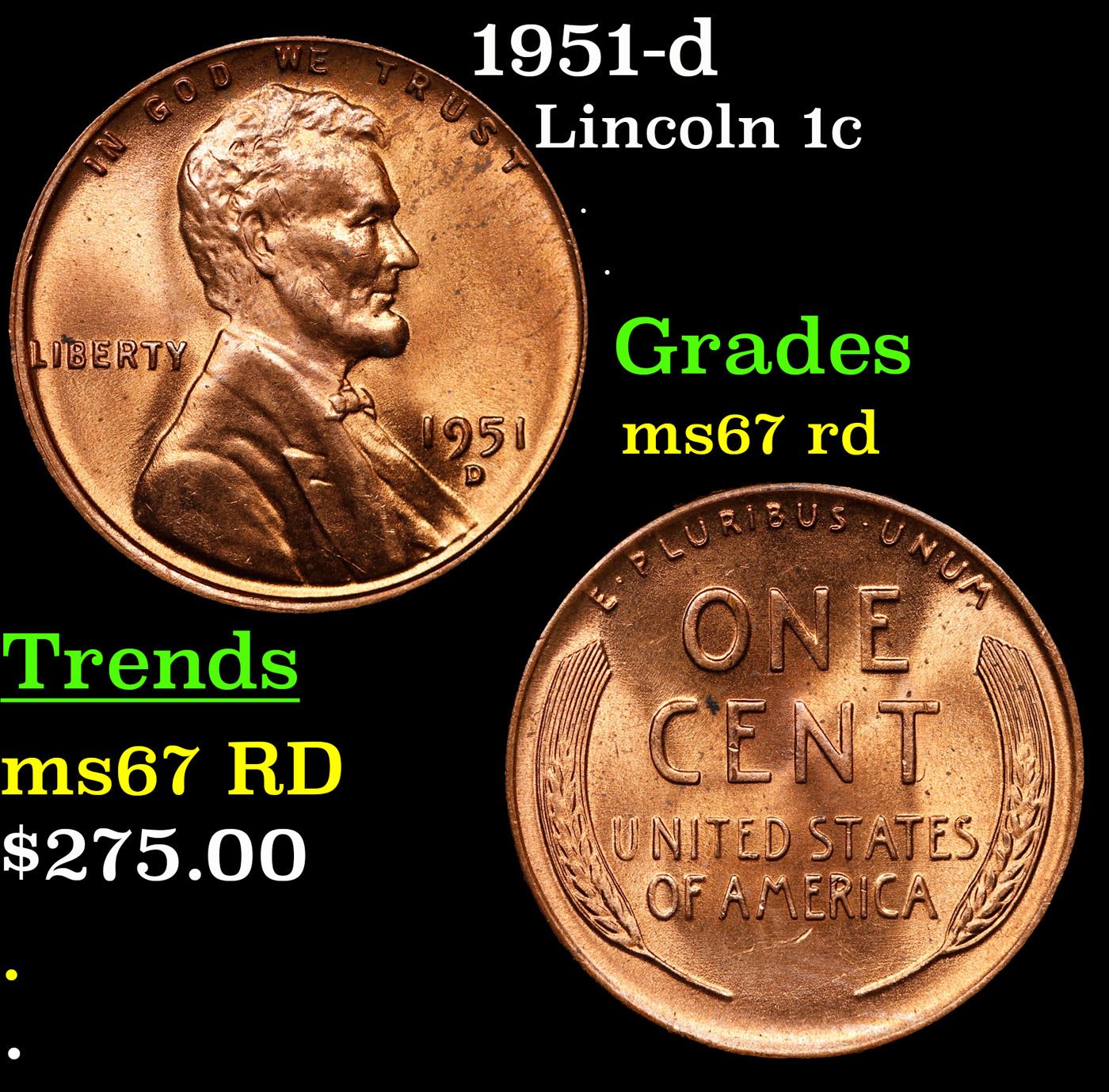 1951-d Lincoln Cent 1c Grades GEM++ Unc RD.