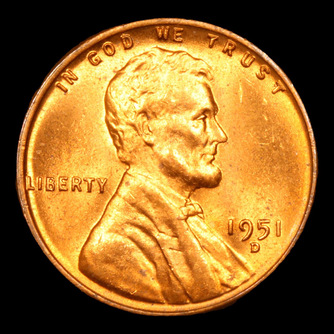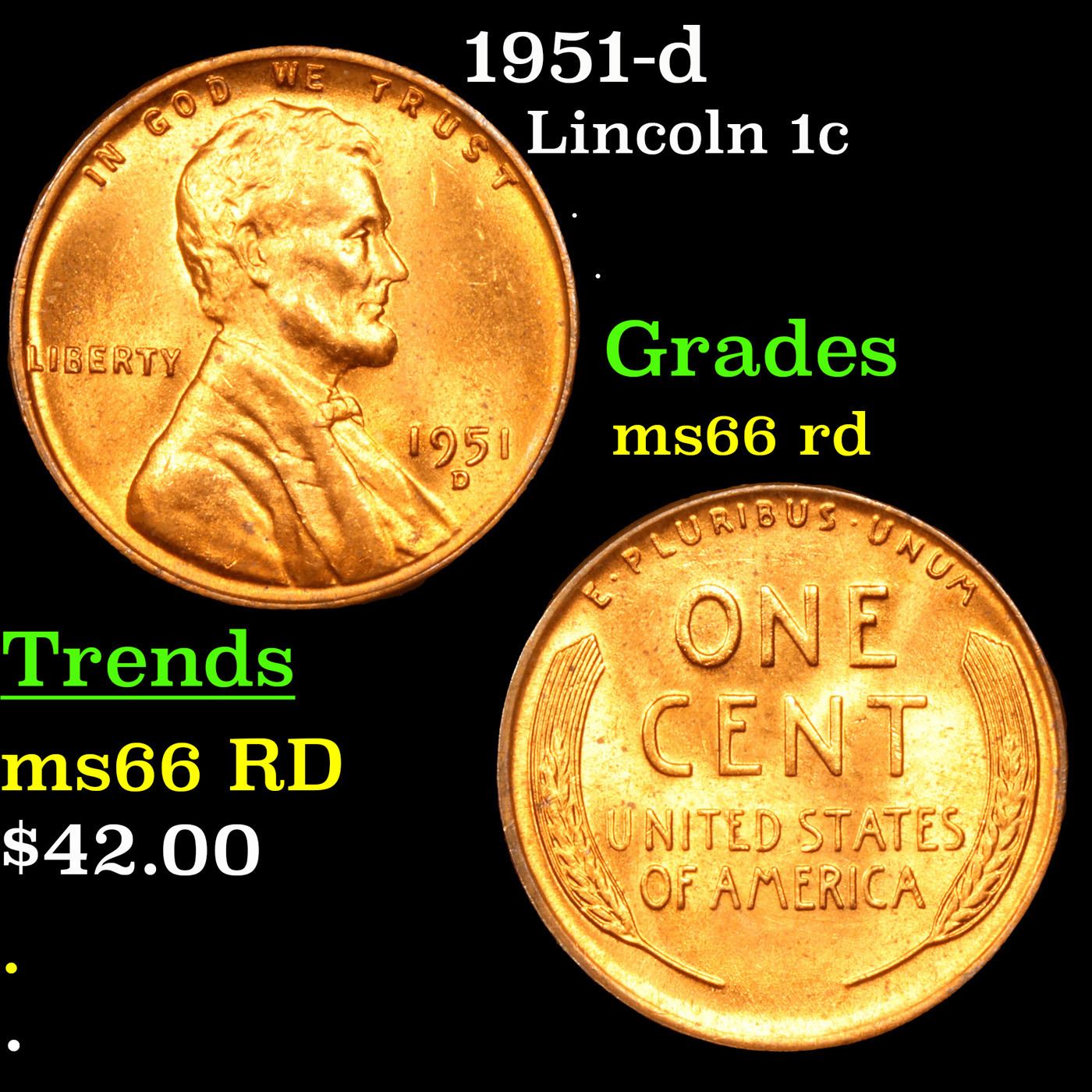 1951-d Lincoln Cent 1c Grades GEM+ Unc RD.