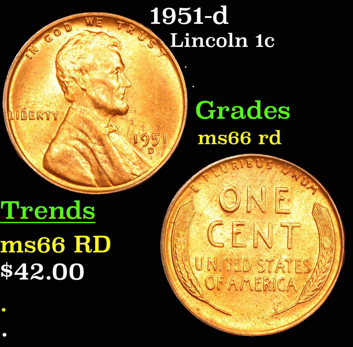 1951-d Lincoln Cent 1c Grades GEM+ Unc RD.