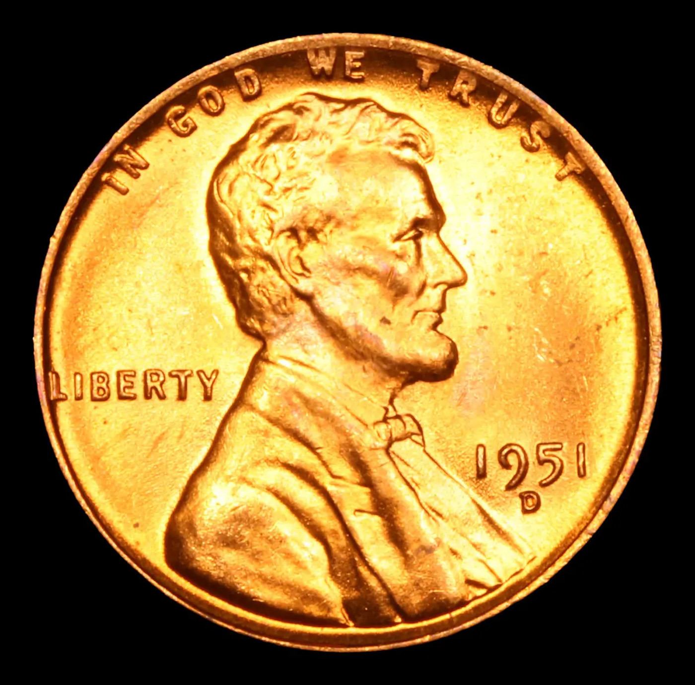 1951-d Lincoln Cent 1c Grades GEM+ Unc RD.