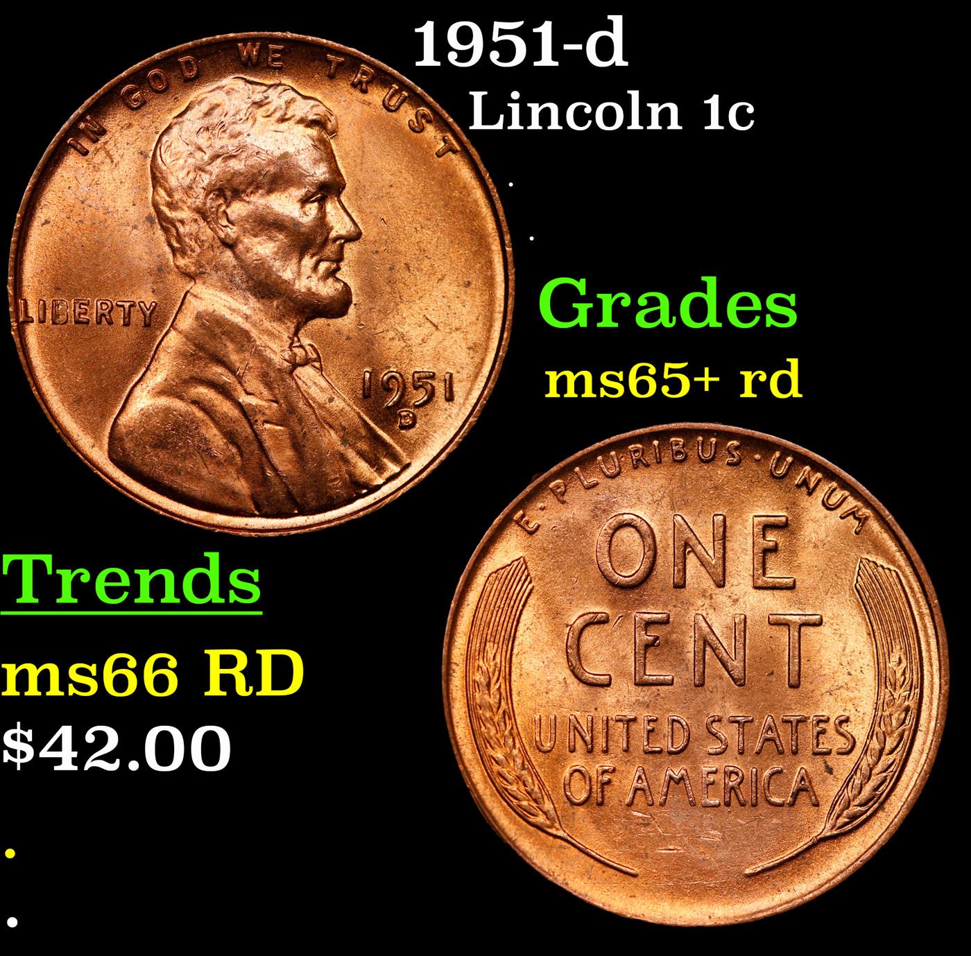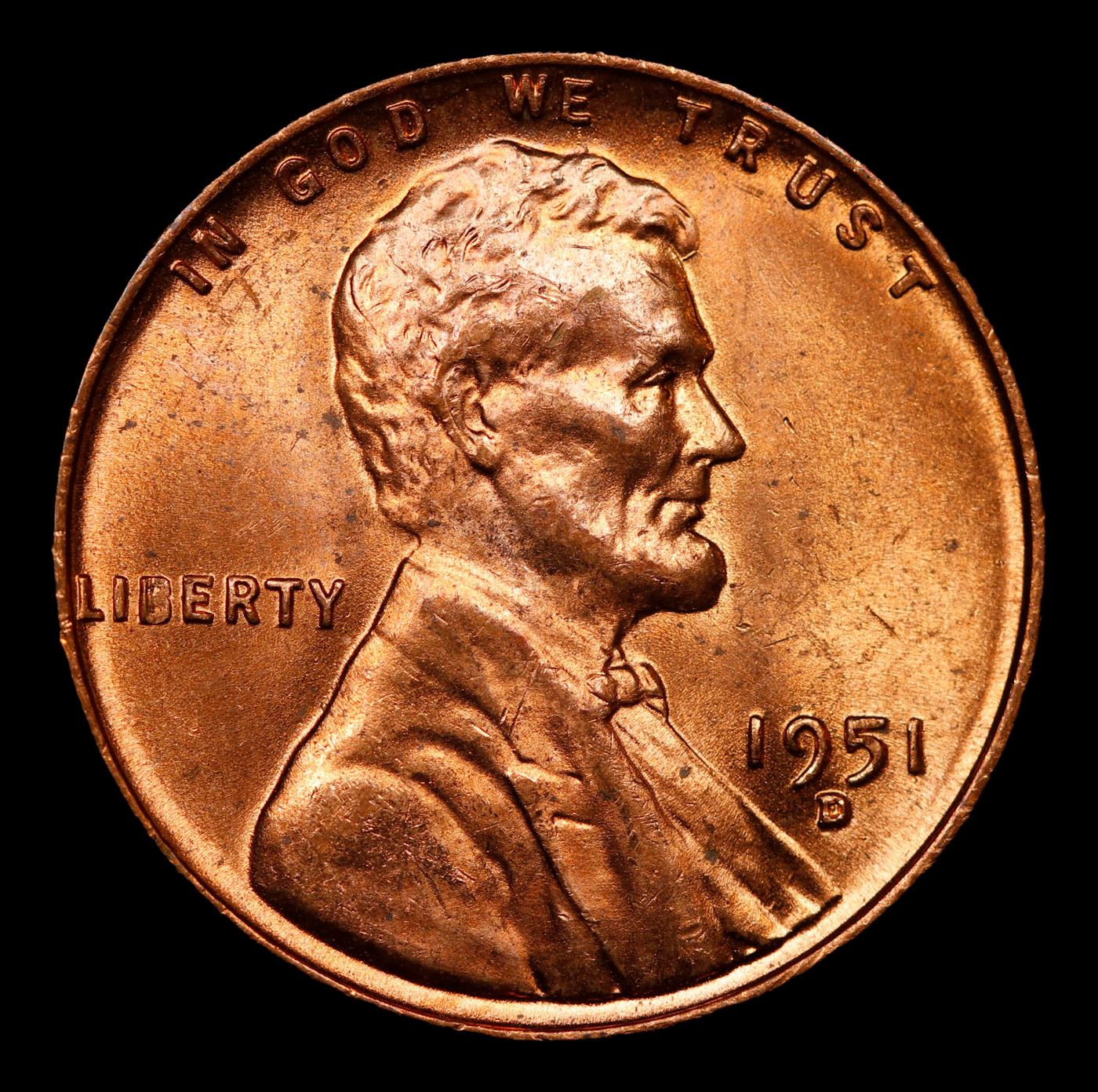 1951-d Lincoln Cent 1c Grades Gem+ Unc RD.