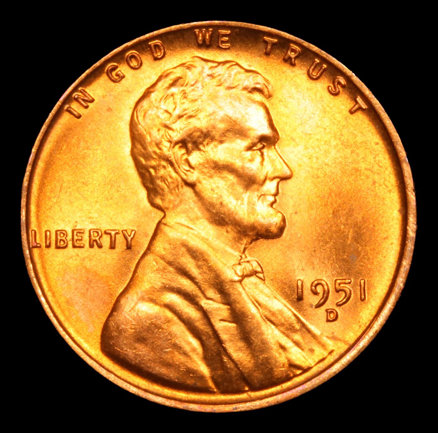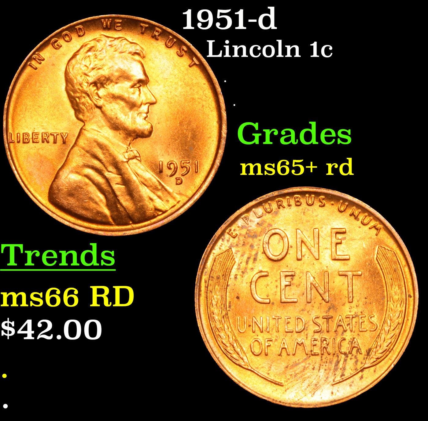 1951-d Lincoln Cent 1c Grades Gem+ Unc RD.