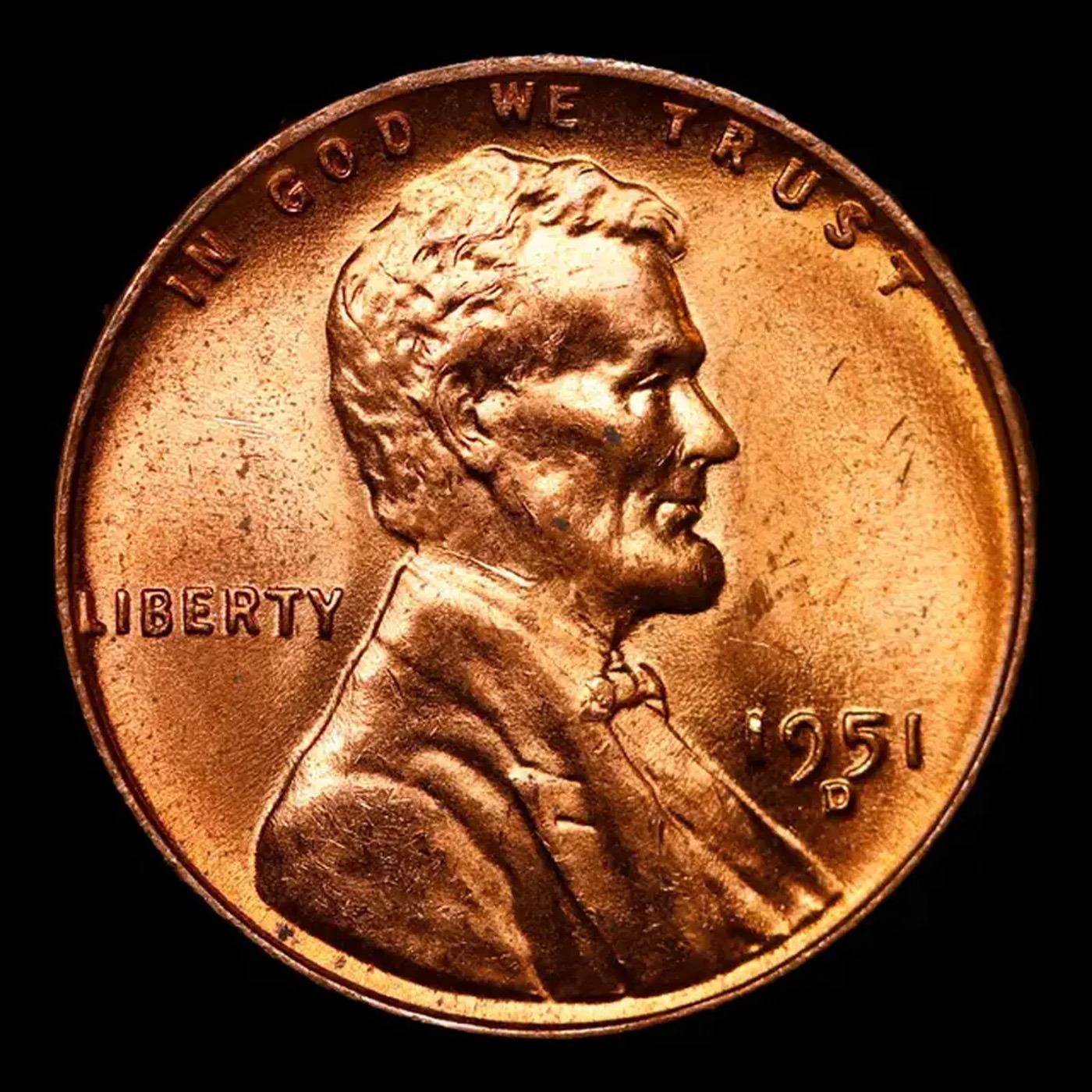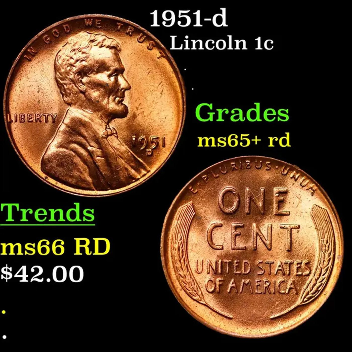 1951-d Lincoln Cent 1c Grades Gem+ Unc RD.