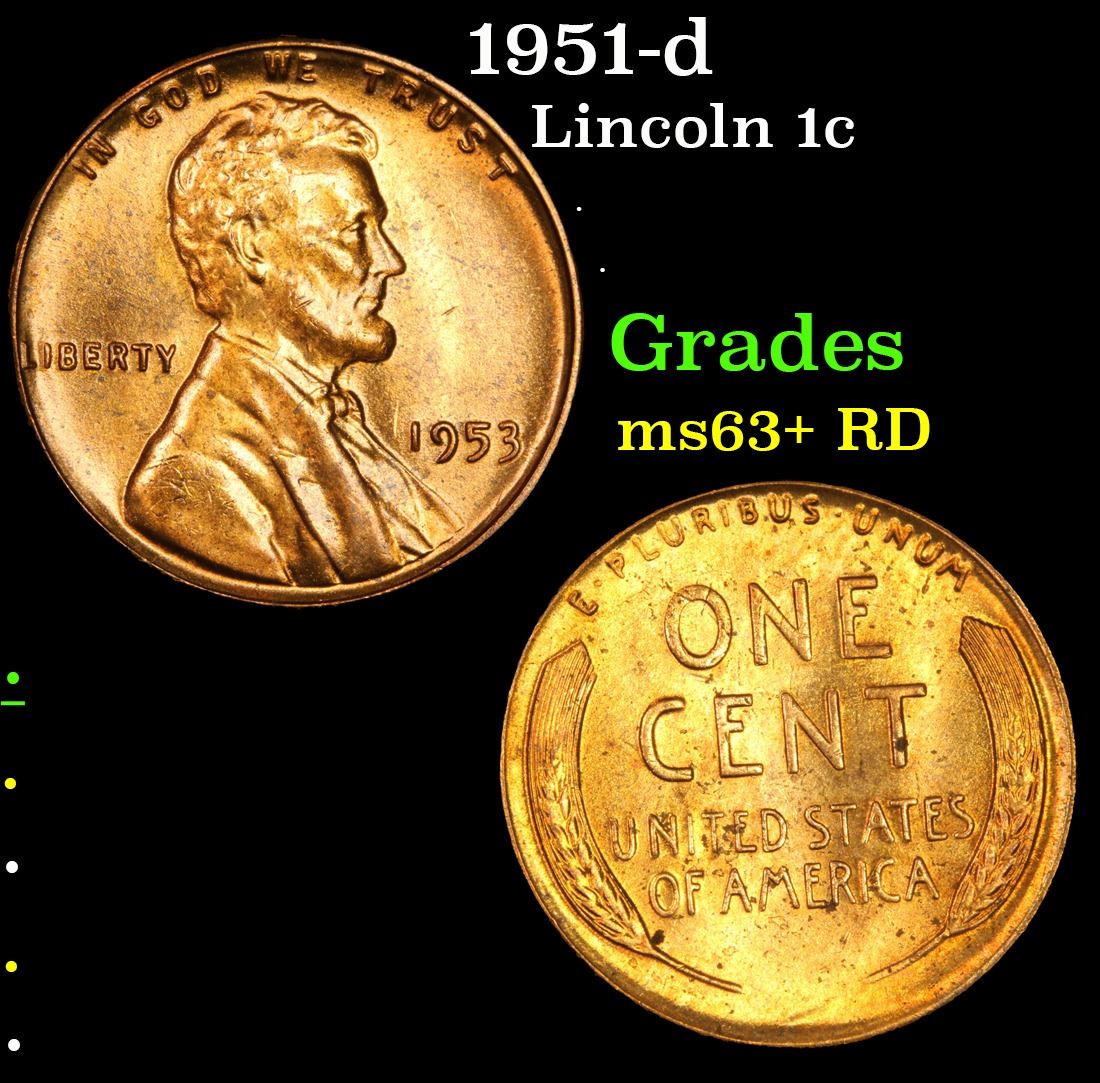 1951-d Lincoln Cent 1c Grades Select+ Unc RD.