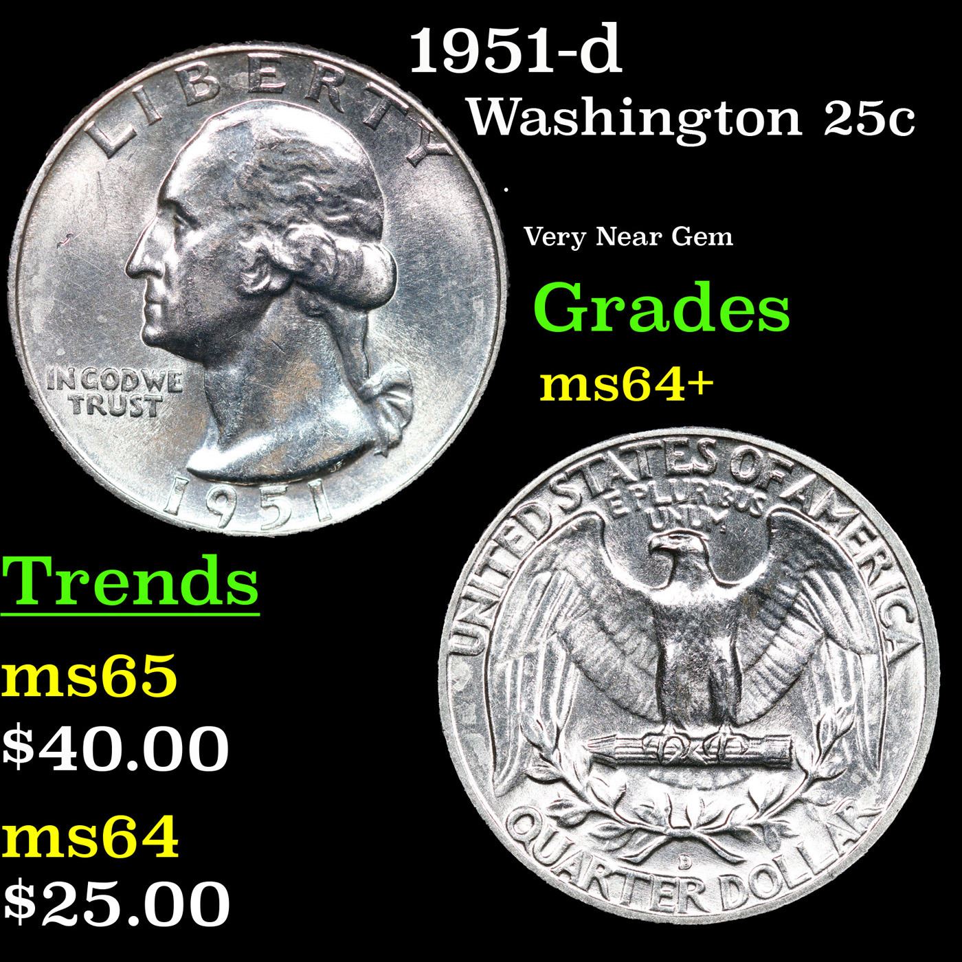 1951-d Washington Quarter 25c Grades Choice+ Unc