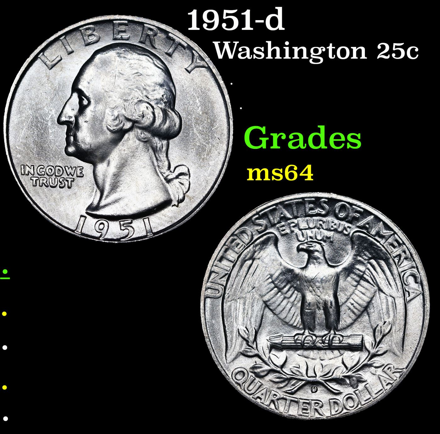 1951-d Washington Quarter 25c Grades Choice Unc.