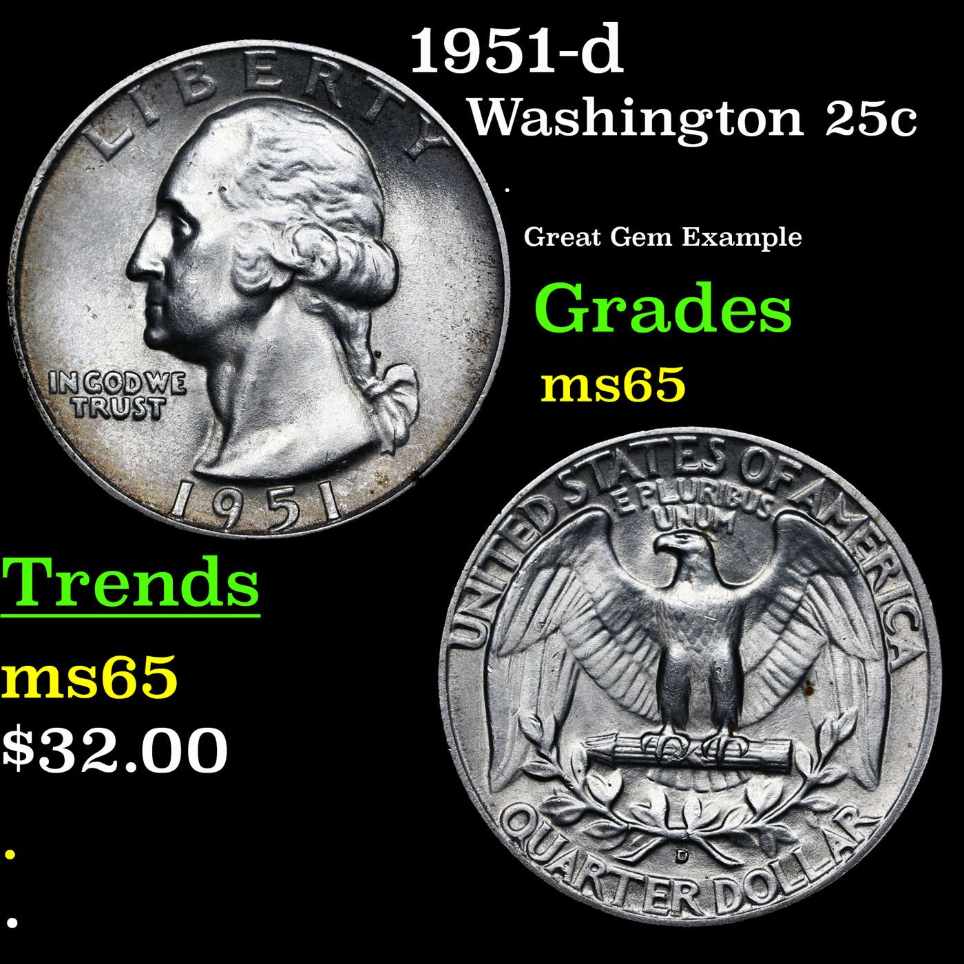 1951-d Washington Quarter 25c Grades GEM Unc.