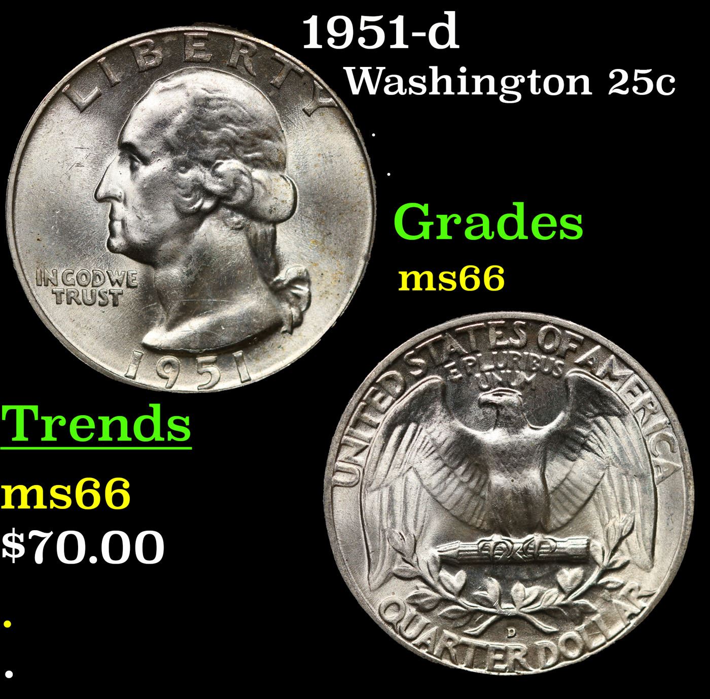1951-d Washington Quarter 25c Grades GEM+ Unc.