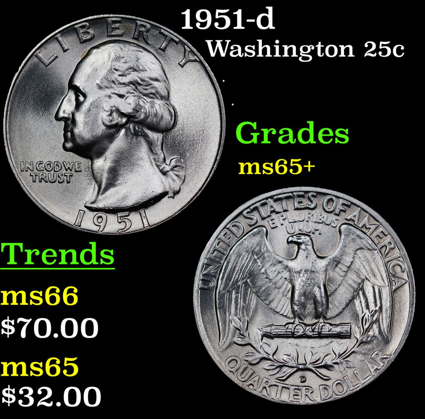 1951-d Washington Quarter 25c Grades GEM+ Unc.